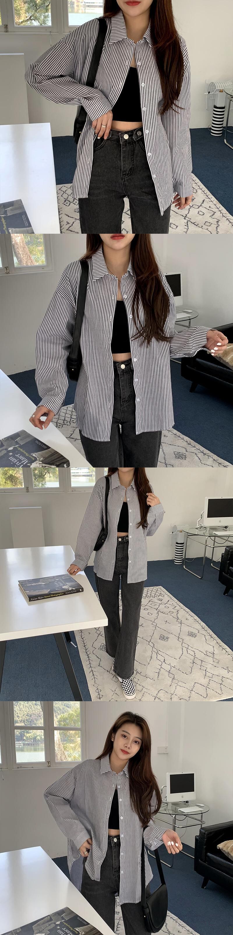 ストライプシャツ スタイルルーズ ロング クレセントシティ30429443066