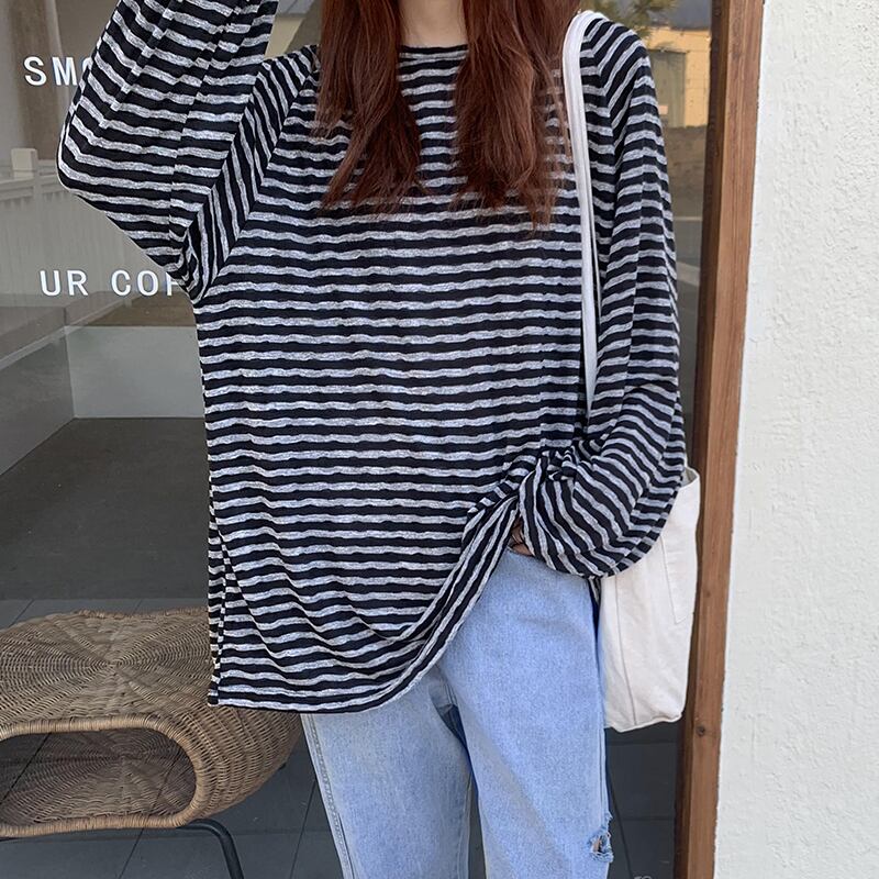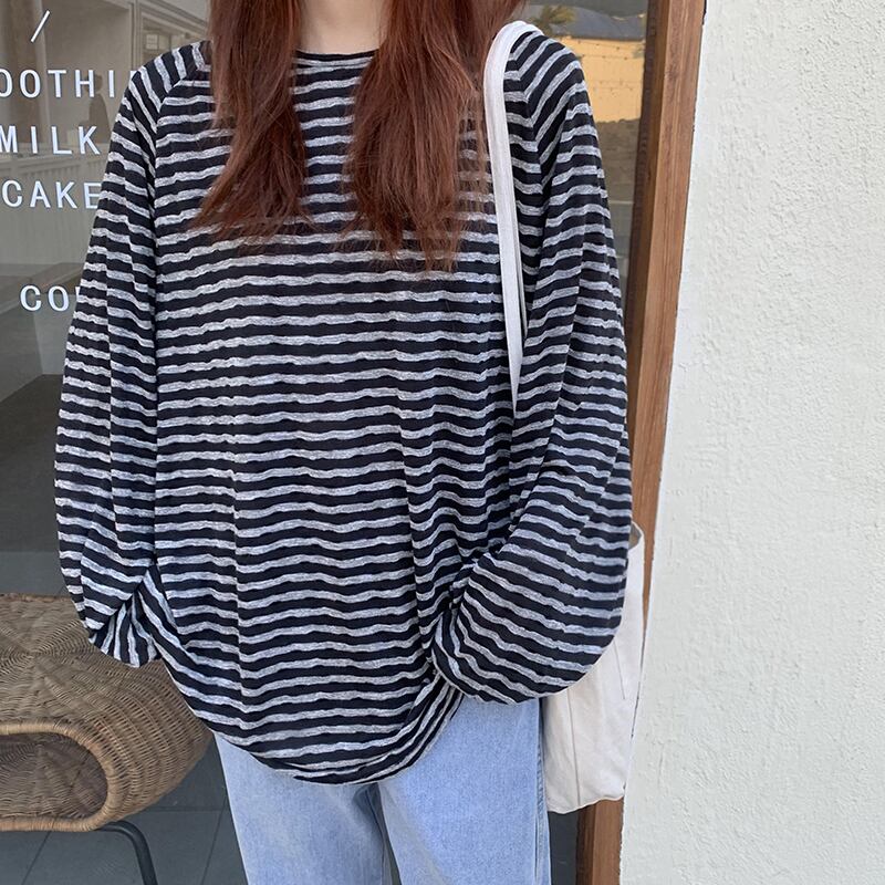 ストライプTシャツ オータムウィンタールーズトップス ロング 秋物 冬物 クレセントシティ58664390310