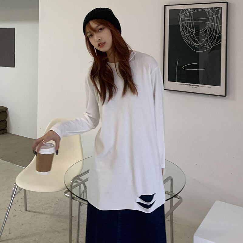 ホワイトTシャツ シャツ スプリングルーズトップス ロング 春物 クレセントシティ47876216933