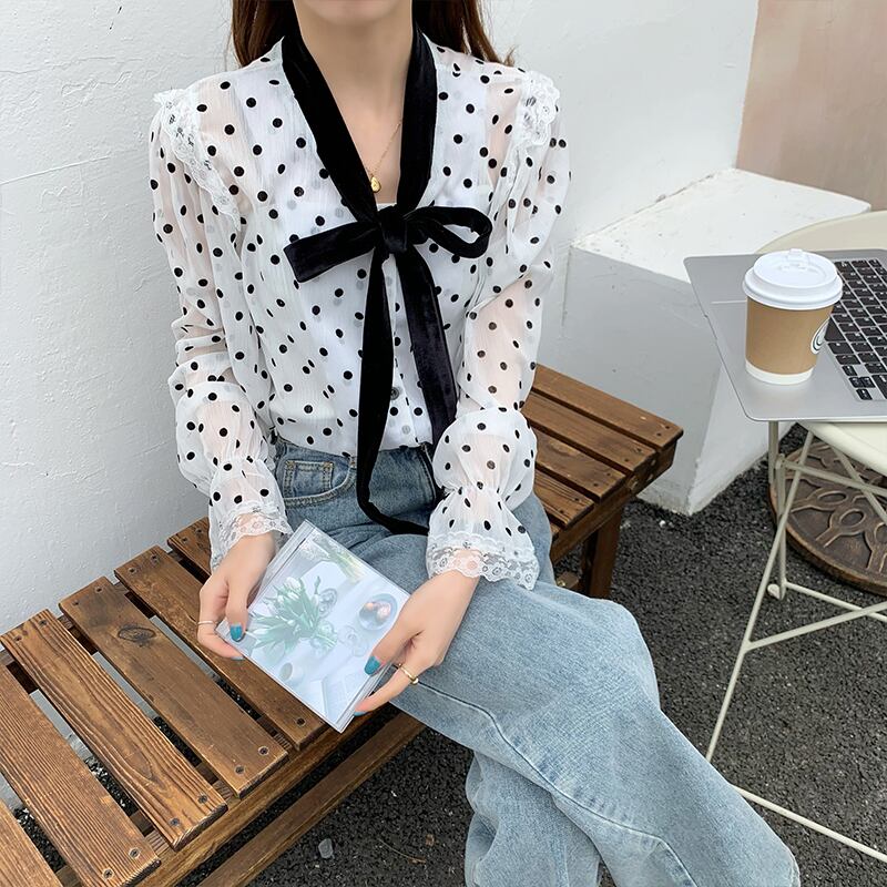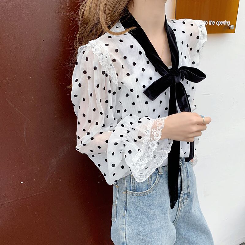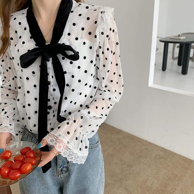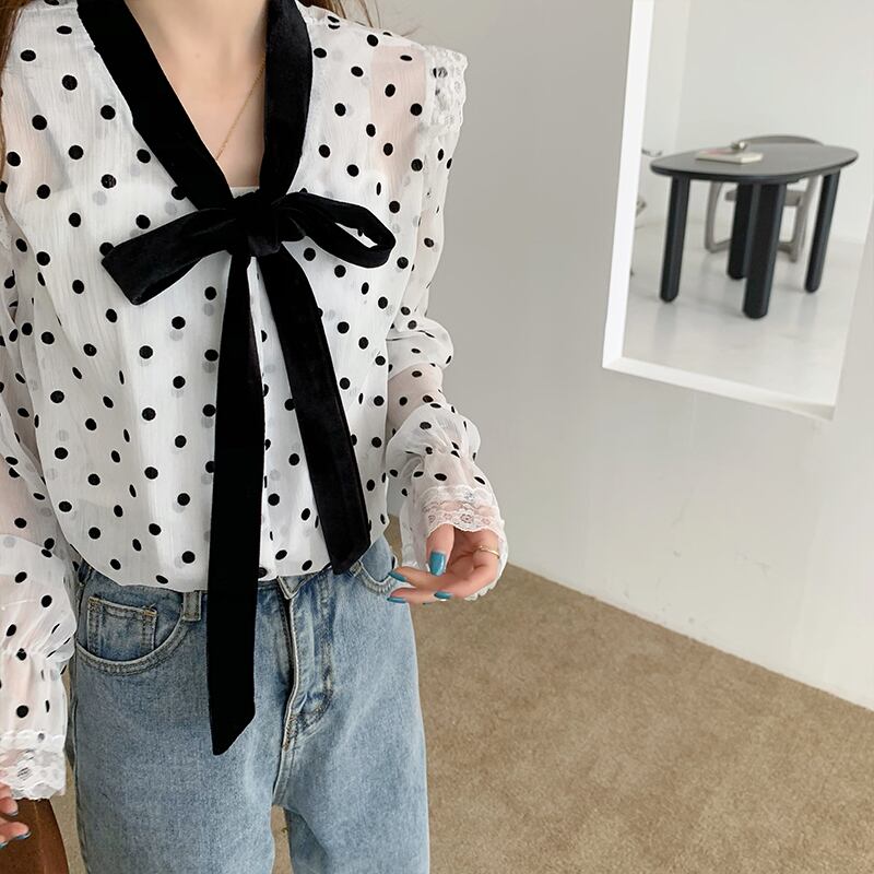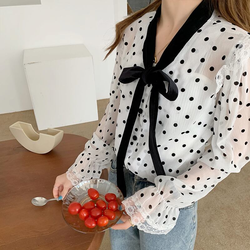 水玉シャツ スプリング薄手スタイル リボン 春物 クレセントシティ29460508017