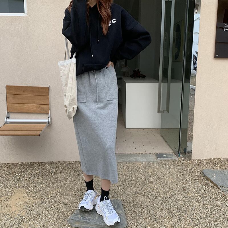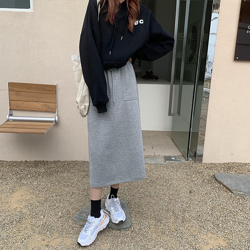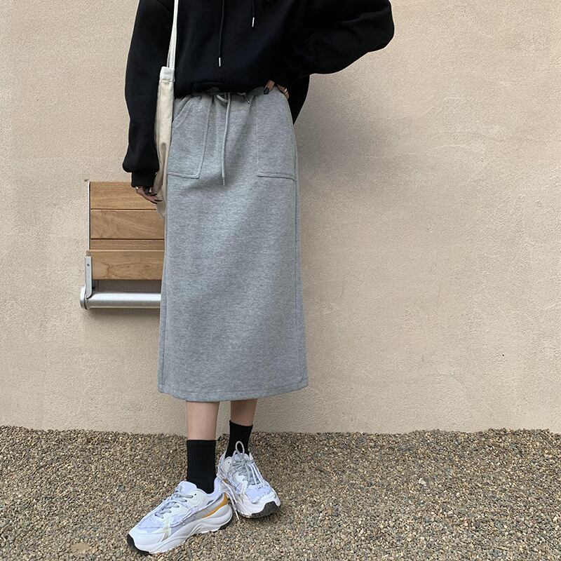 ストレッチウェストスカート レディースオータムウィンターカジュアルハイウェストAライン レース エラスティック 伸縮 秋物 冬物 レースアップ クレセントシティ19204307299