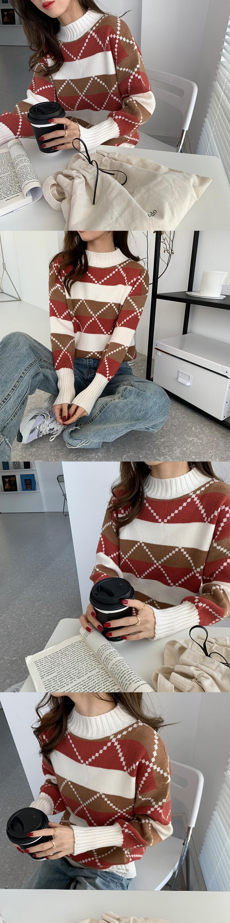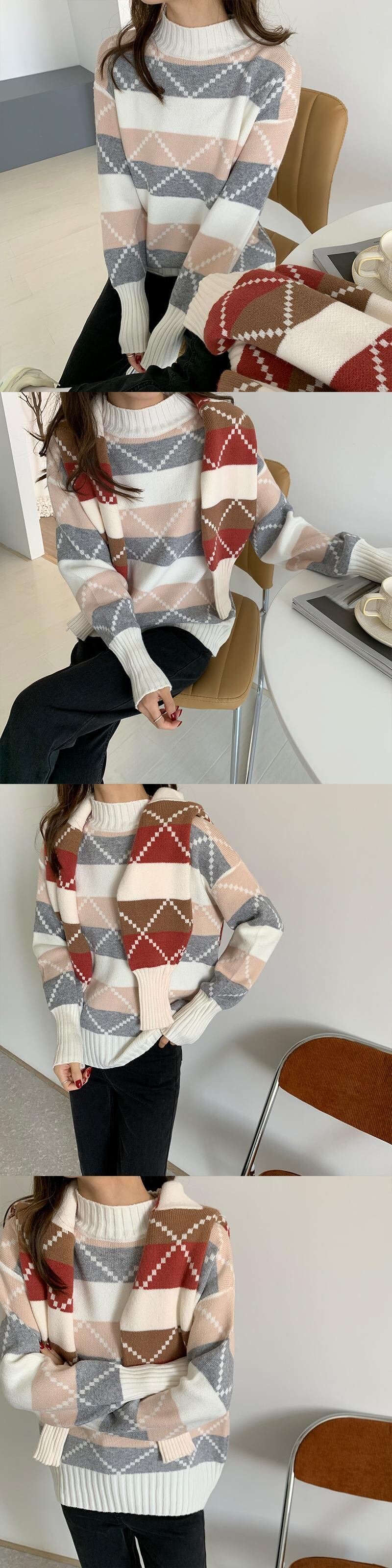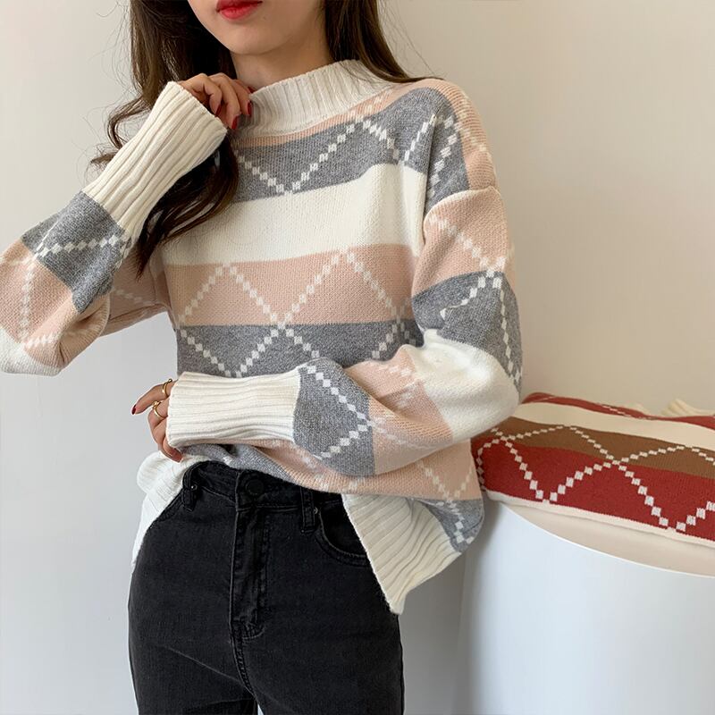 カラーセーター ルーズ長袖スリーブニットトップス ロング ウィンター 冬物 クレセントシティ37877928545