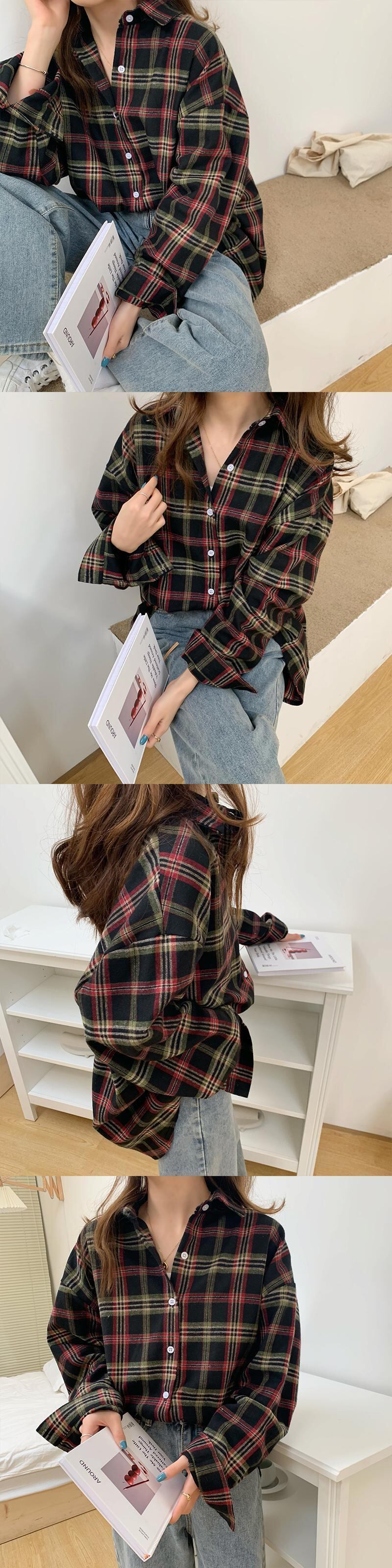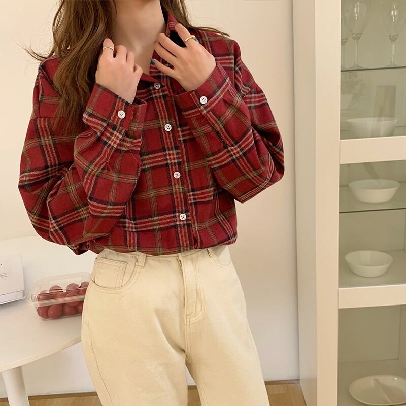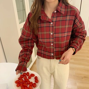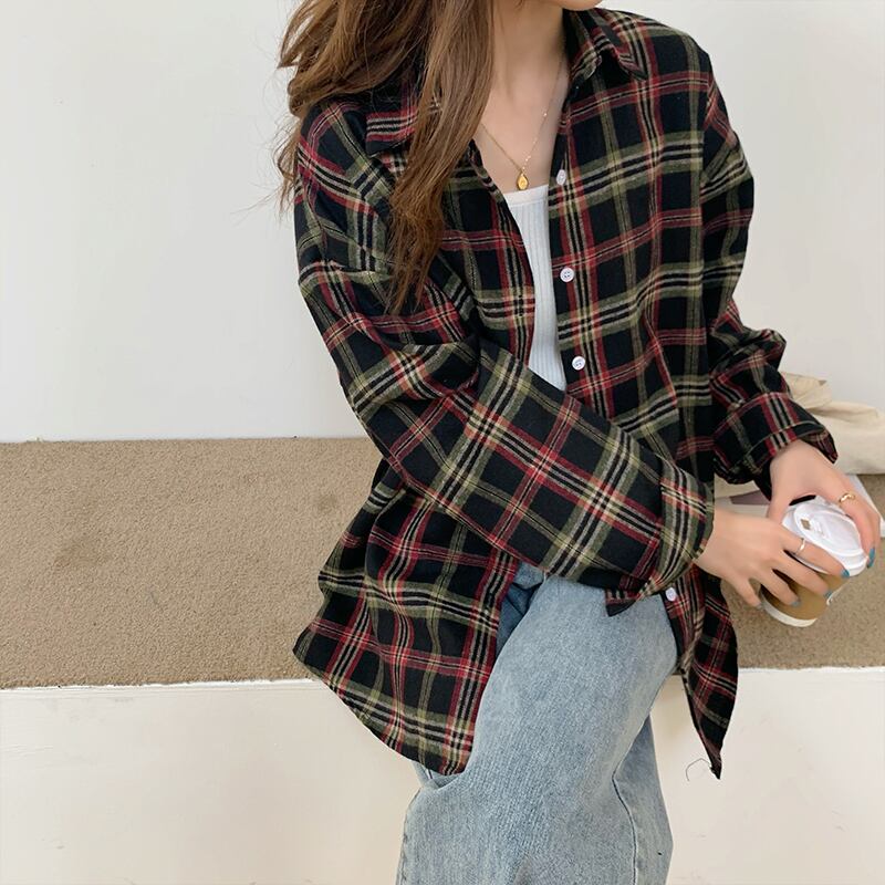 格子柄シャツ スプリングスタンダードルーズジャケット ロング レトロ 春物 クレセントシティ18703358110