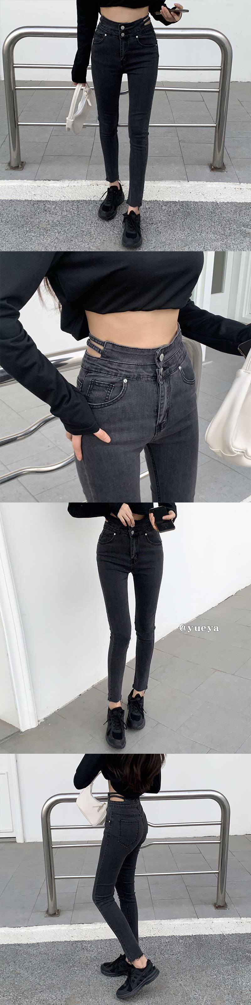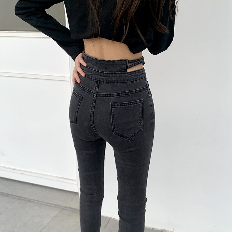 ブラックジーンズ ウェストスリムスキニーパンツ ウィンター 冬物 クレセントシティ71377493612