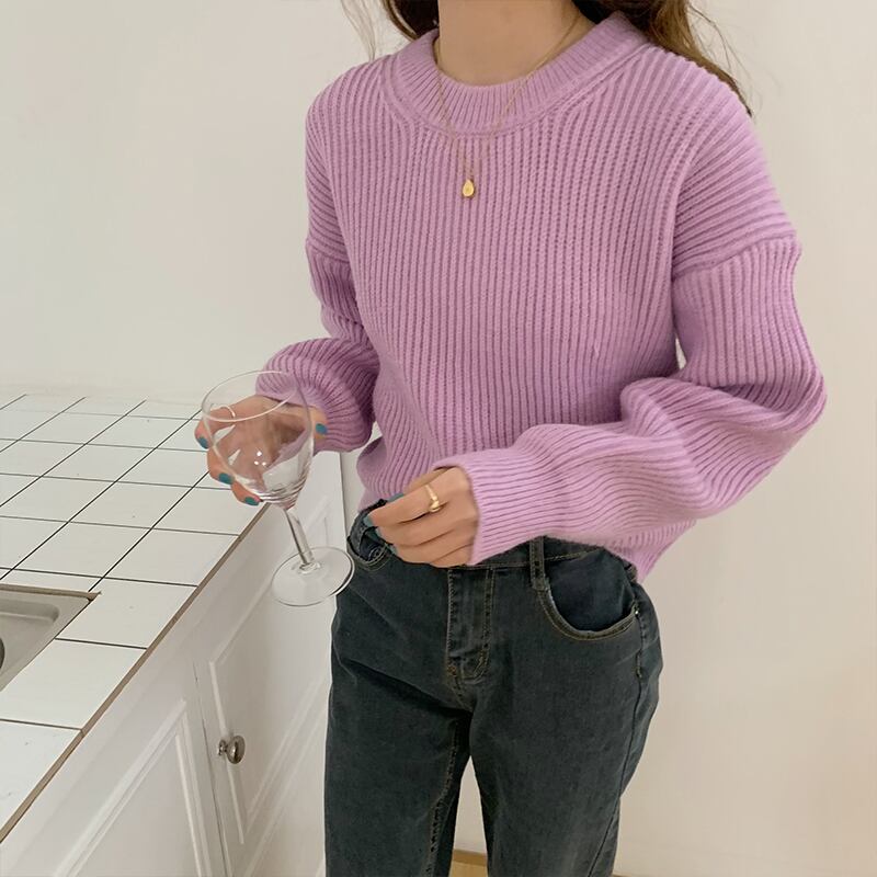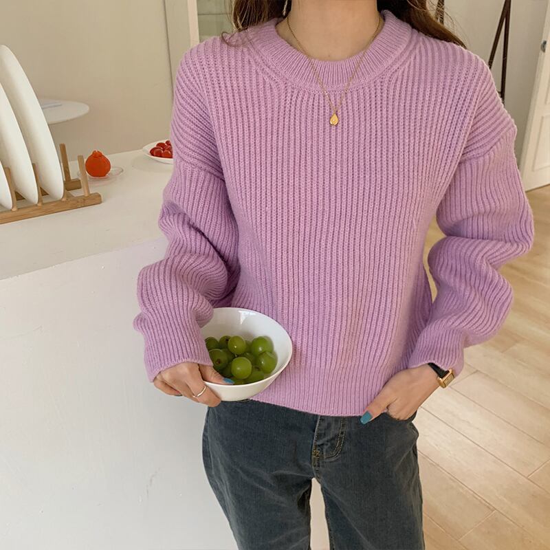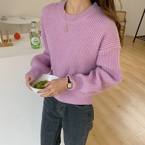 オータムウィンターセーター レディースラウンドネックルーズ薄手ニットトップス ロング 秋物 冬物 Oネック クレセントシティ47302124335