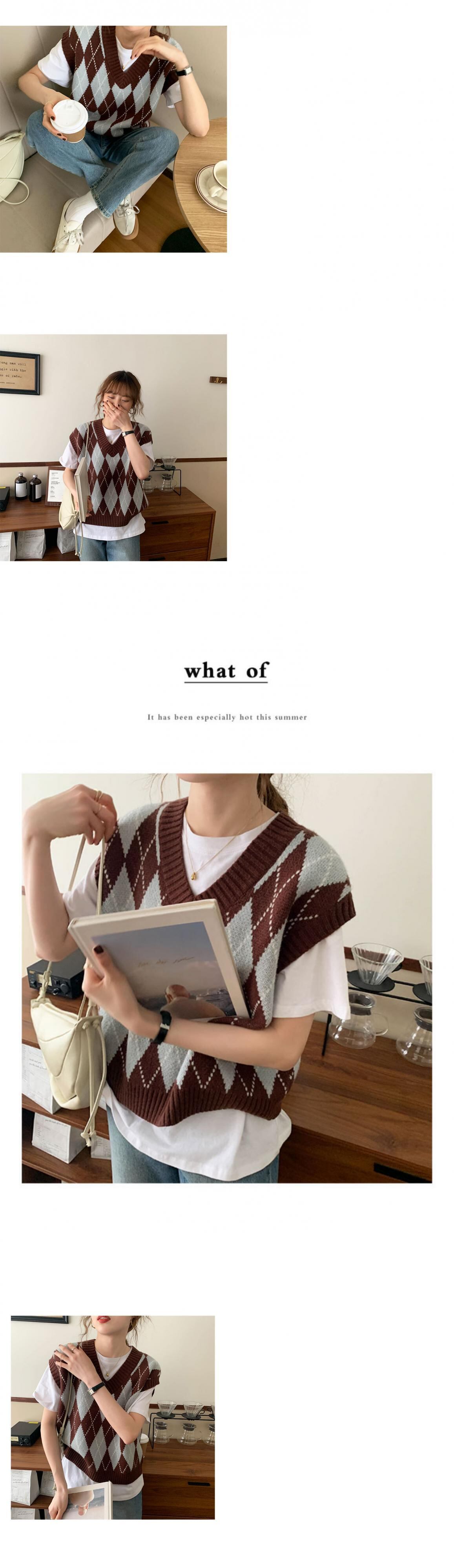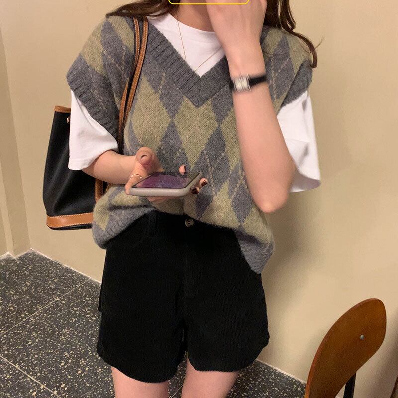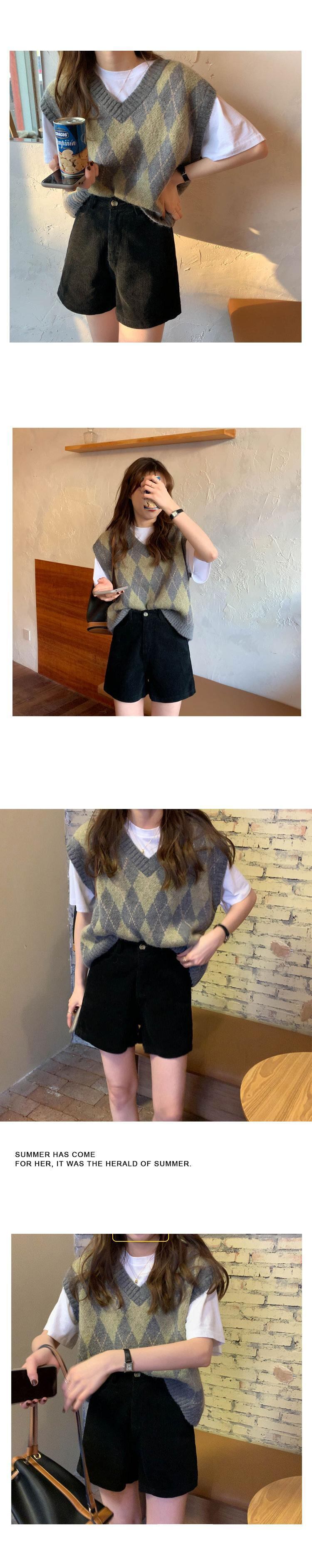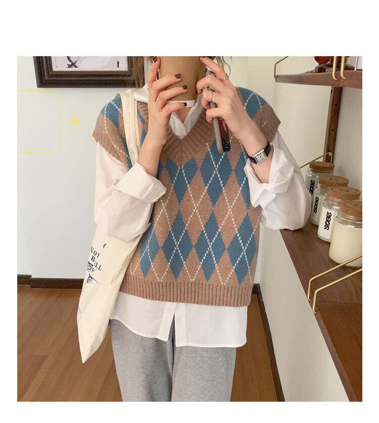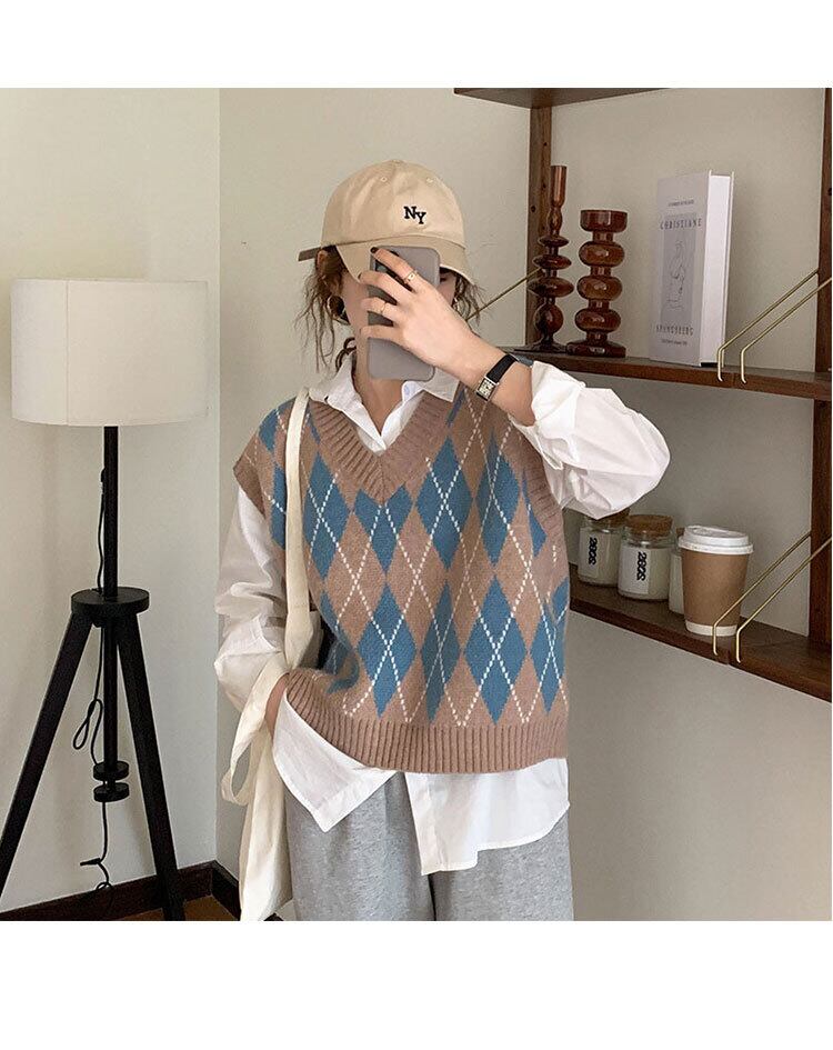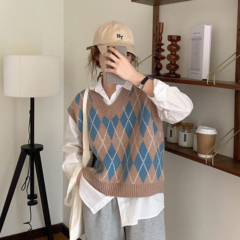 スタンダードニットスプリングルーズVネックセーター レトロ 春物 クレセントシティ34918054272