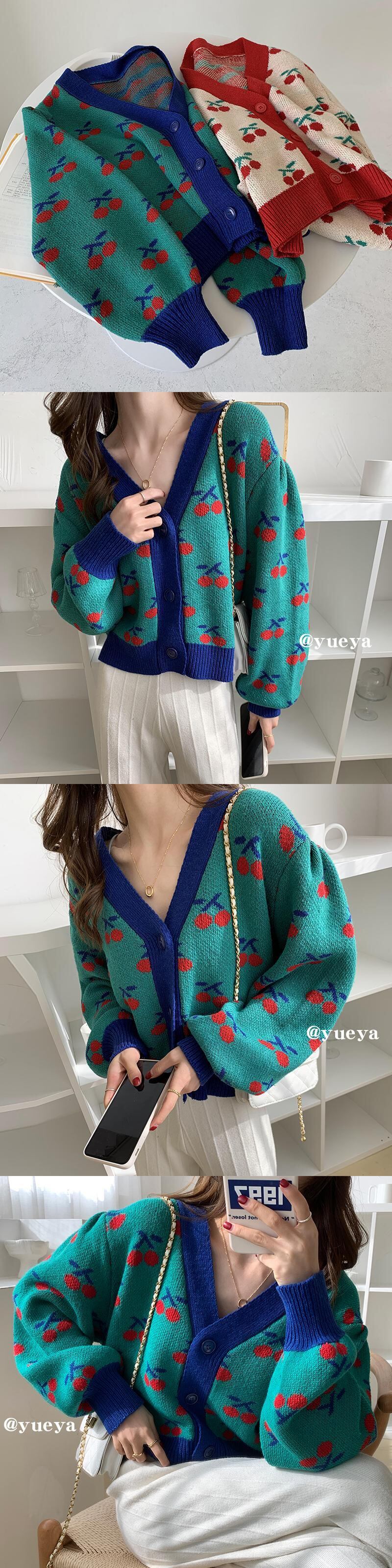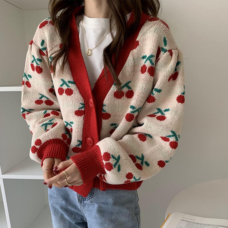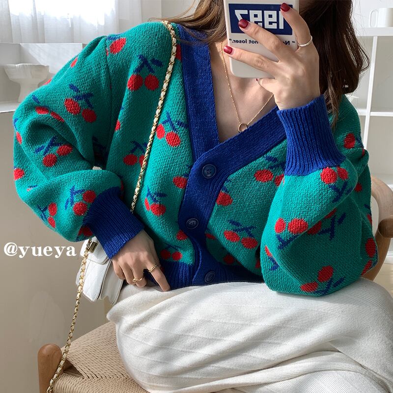 ジャカードVネックニットカーディガンルーズセーター ジャケット オータム 秋物 ウィンター 冬物 クレセントシティ39641587604