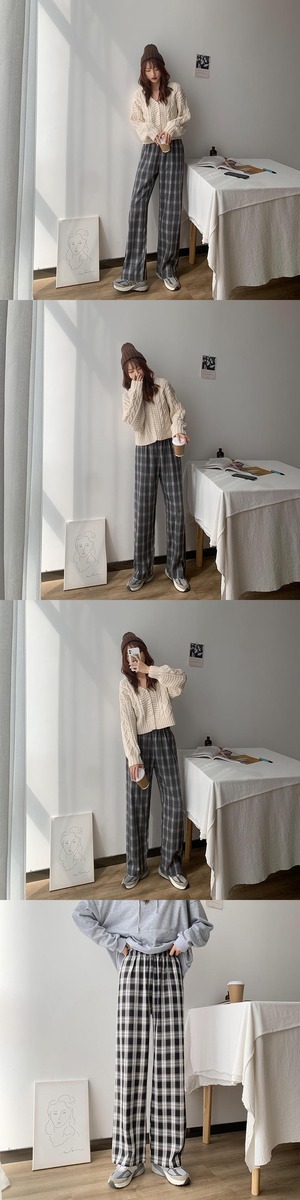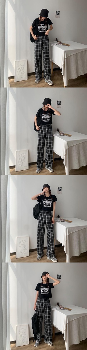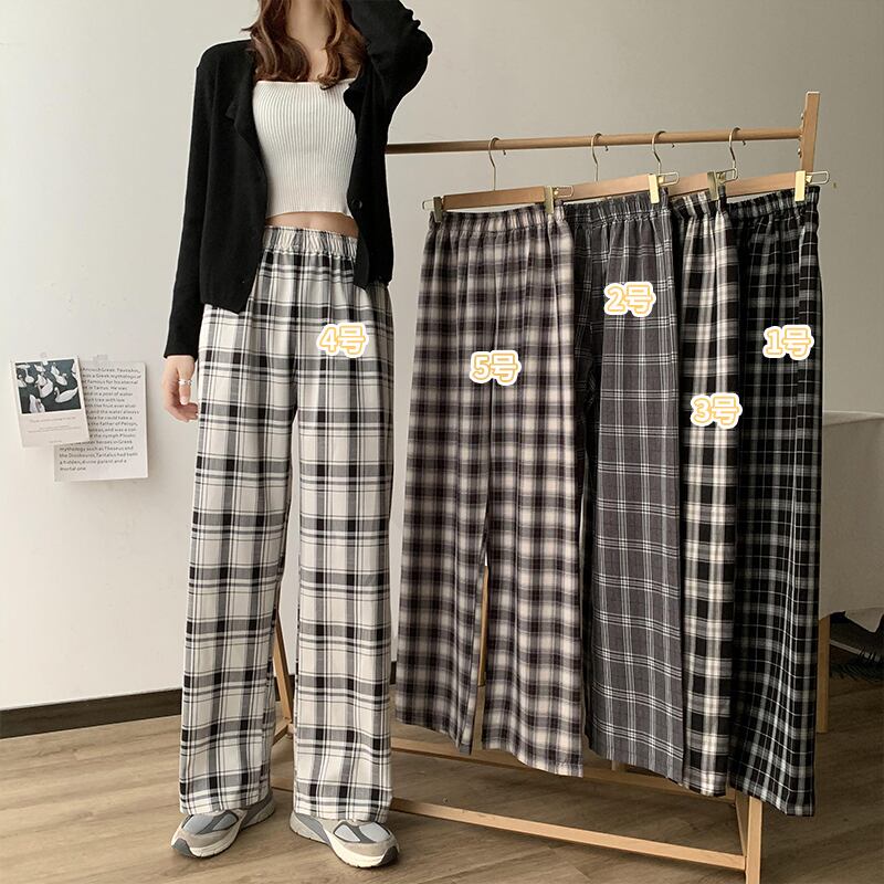 格子柄パンツ スプリングルーズカジュアル薄手ハイウェスト 春物 クレセントシティ13113461365