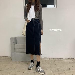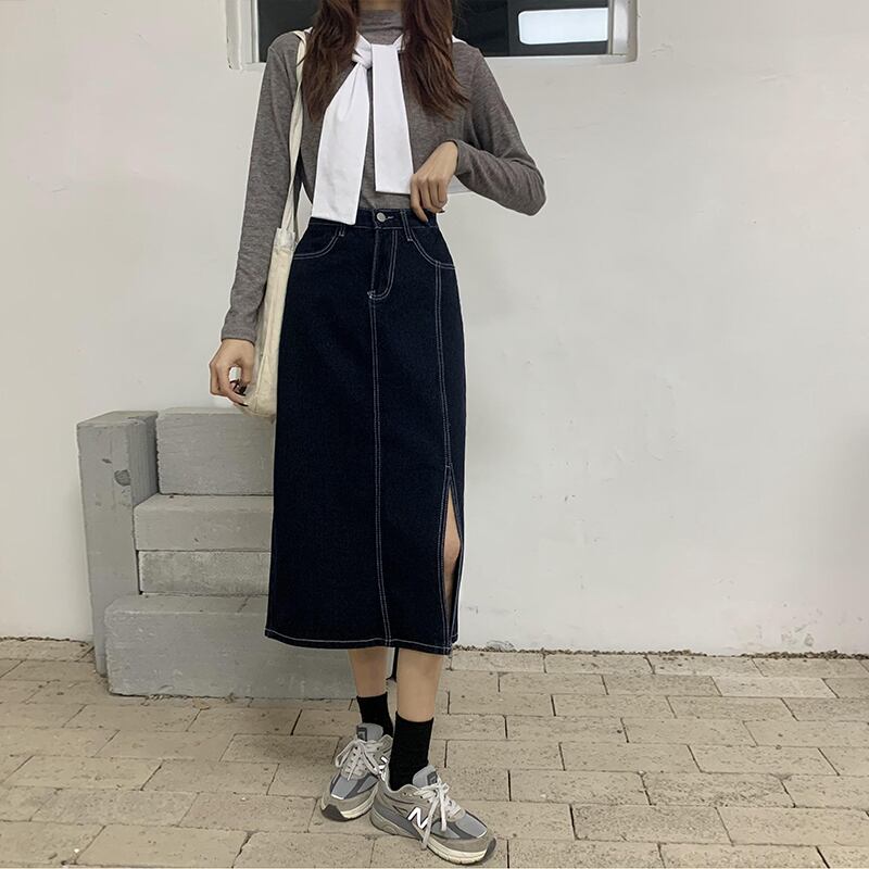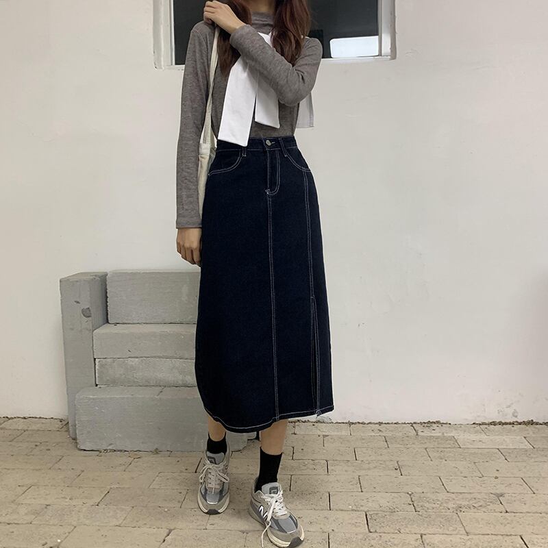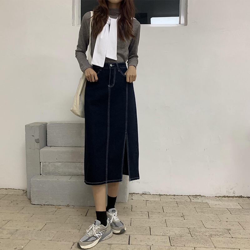 スカート オータムウィンターハイウェストウェスト薄手Aライン 秋物 冬物 クレセントシティ25610755651