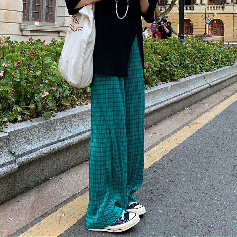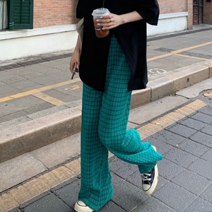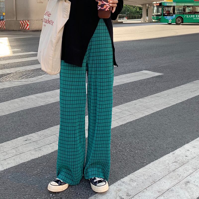 格子柄パンツ サマー薄手ルーズカジュアルハイウェストウェストスリム 夏物 クレセントシティ99002306446