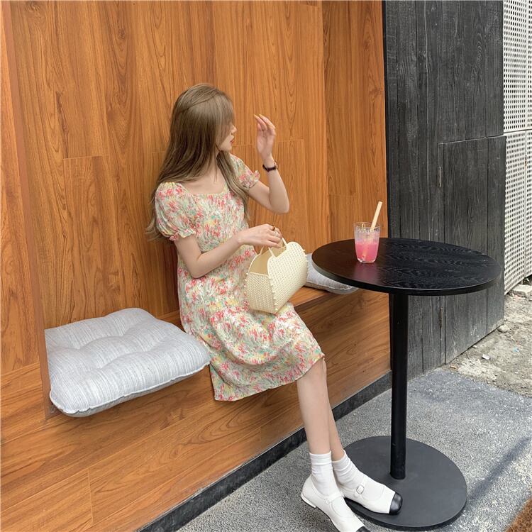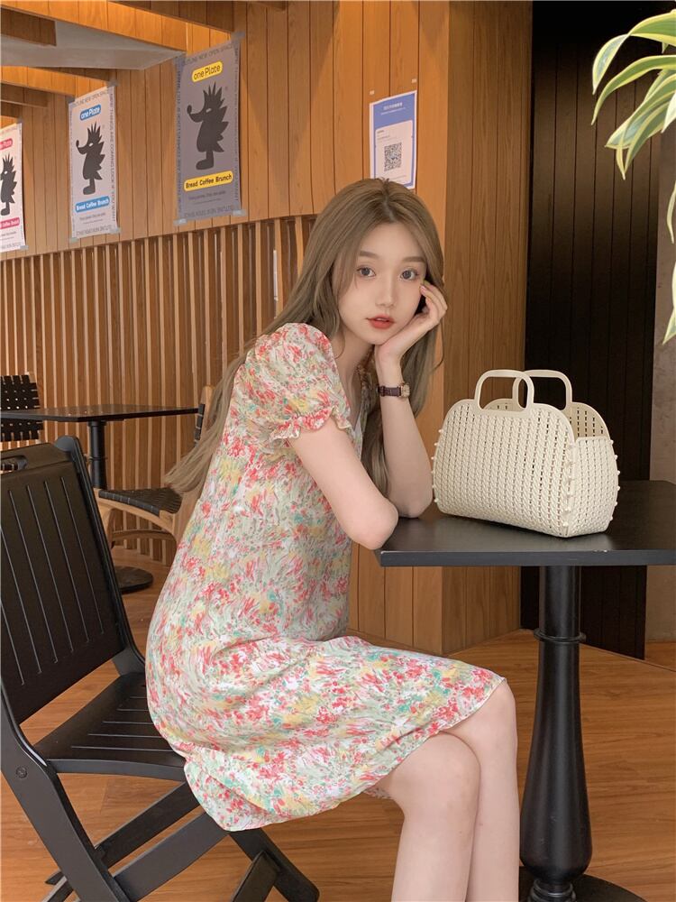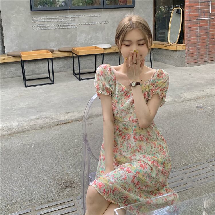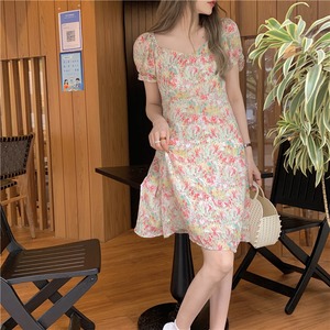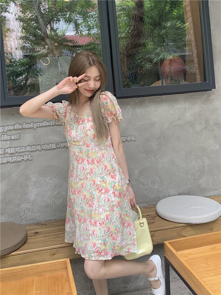 スタンダードドレス サマースリーブウェストフローラルAラインスカート レトロ 大人ガーリー スウィート キュート カジュアル 夏物 花柄 クレセントシティ47268574657