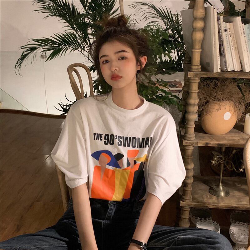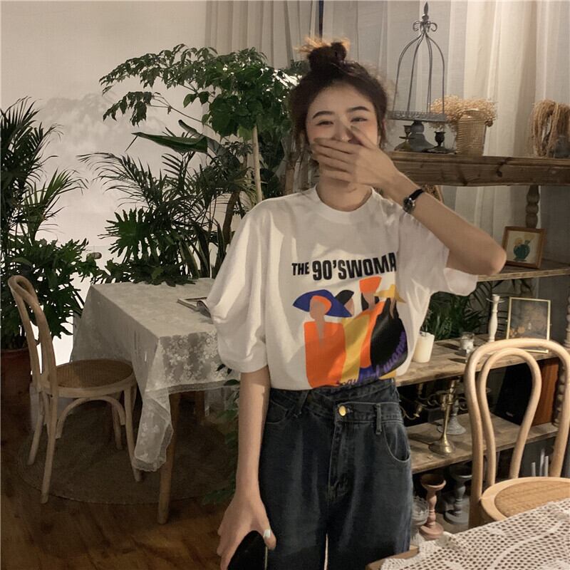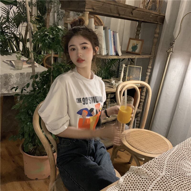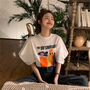 プリントスリーブTシャツ サマーカジュアルルーズブラック薄手トップス 夏物 クレセントシティ99362840134