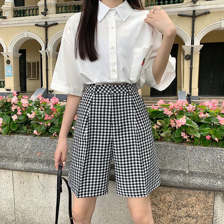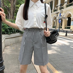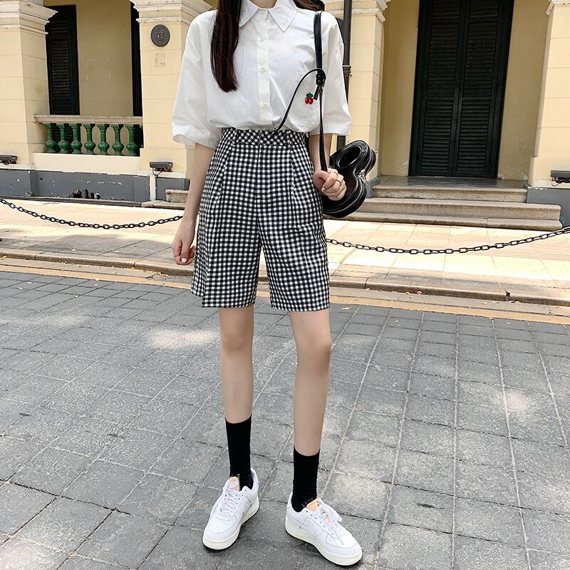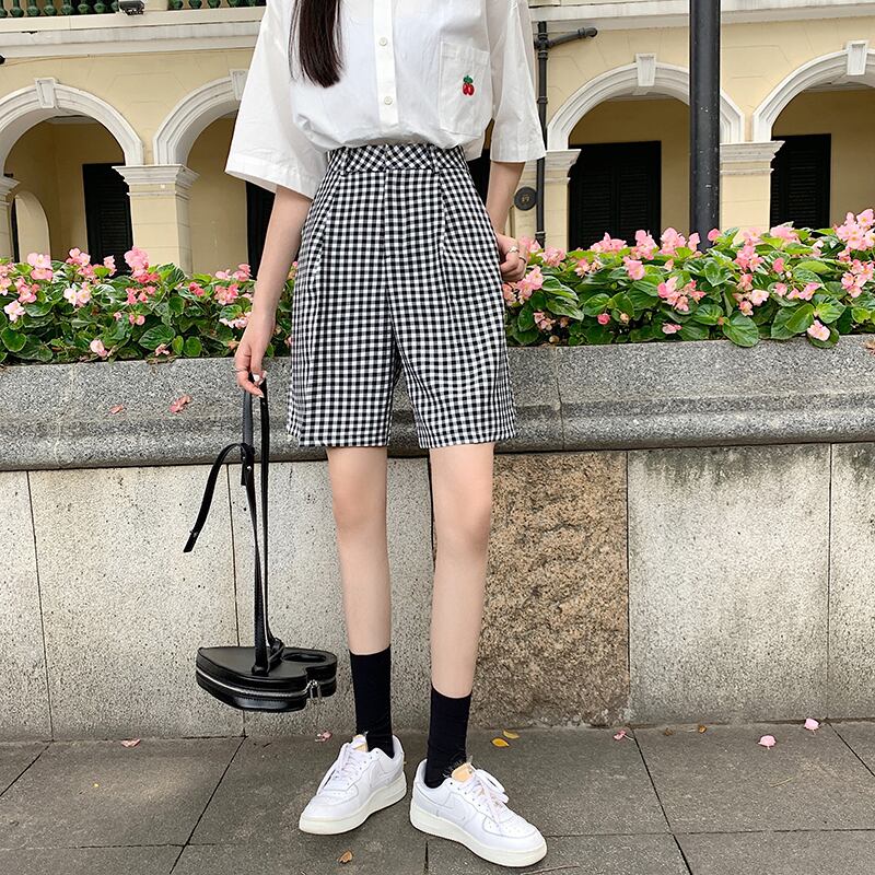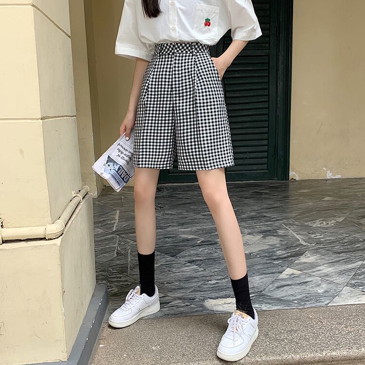 スタンダード格子柄ショーツ サマールーズ薄手パンツ ハイウェストウェストカジュアル レトロ 夏物 ブルマー クレセントシティ8562606225