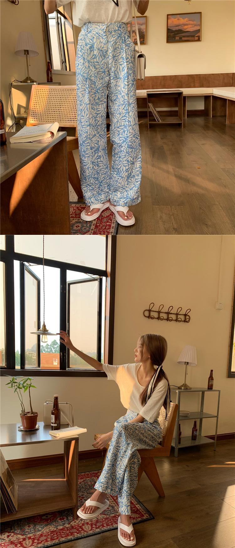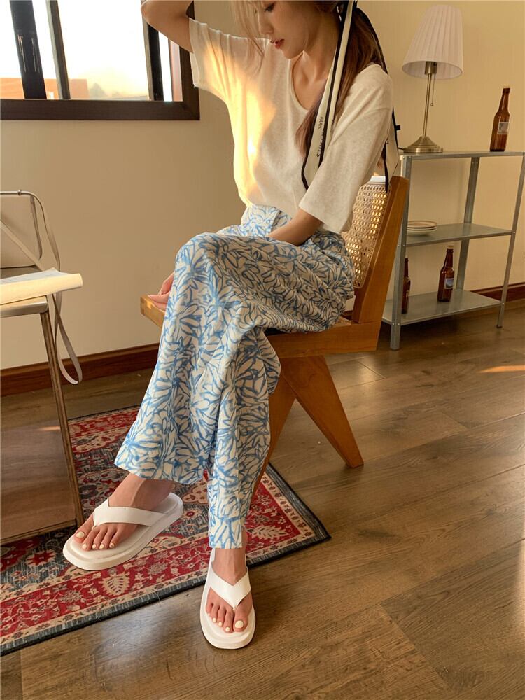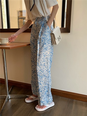 プリントハイウェストパンツ サマールーズ薄手 夏物 クレセントシティ68919991707