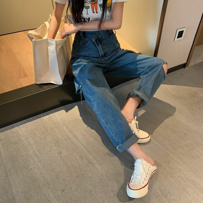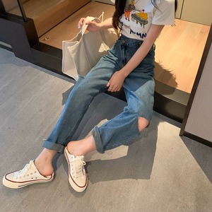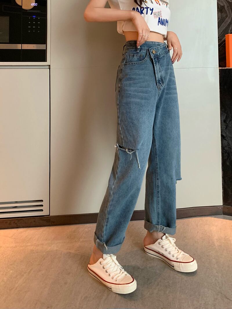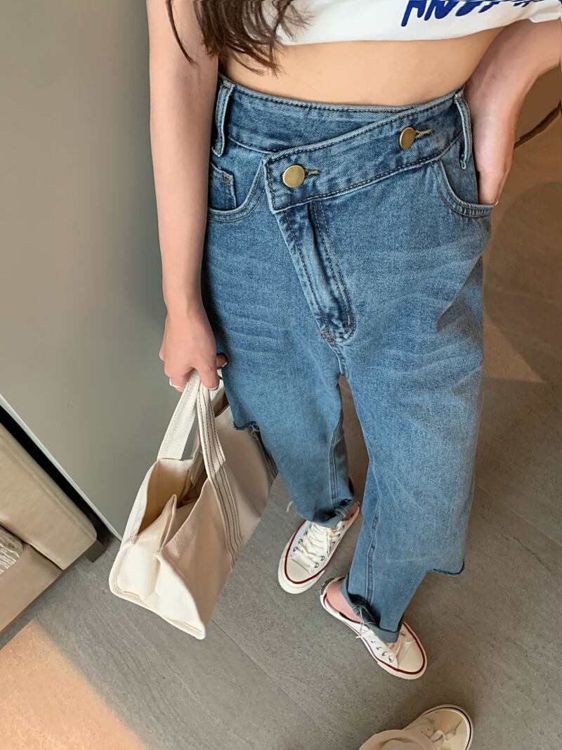 バックルジーンズ サマースタンダードルーズスリムハイウェストパンツ レトロ 夏物 クレセントシティ32195545772