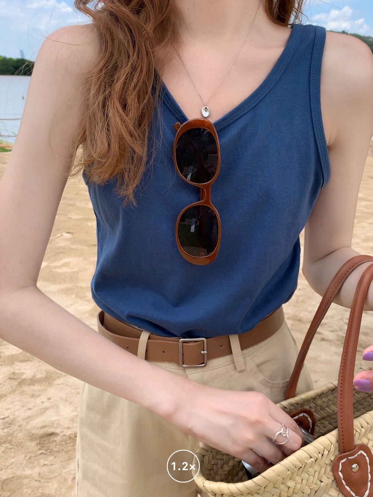 ノースリーブTシャツ サマーカジュアルルーズ薄手ソリッド カラートップス 夏物 ソリッドカラー クレセントシティ54220596750