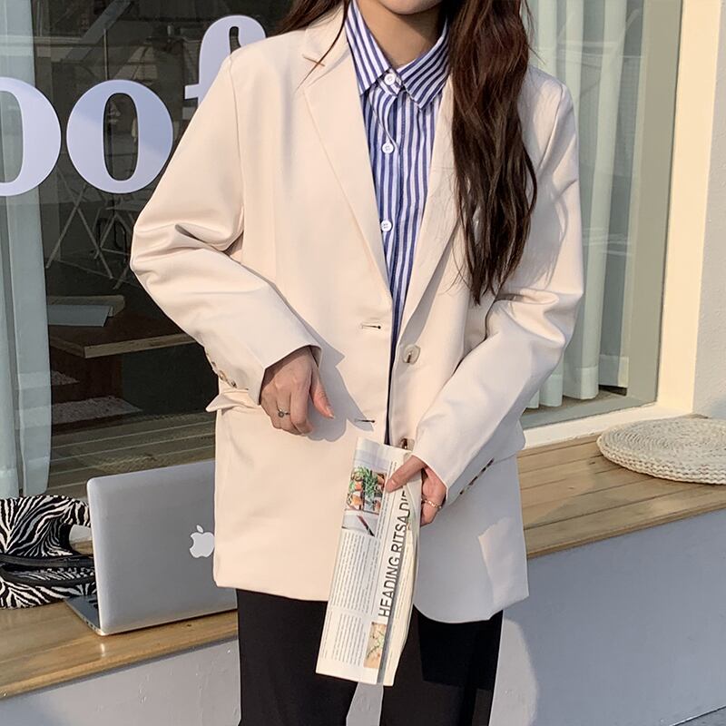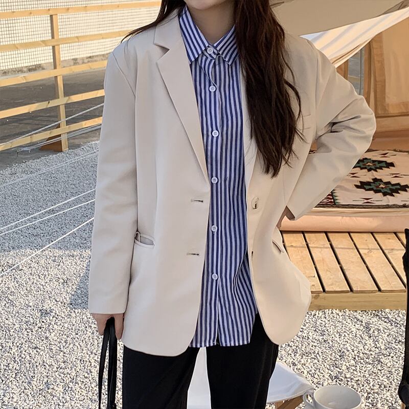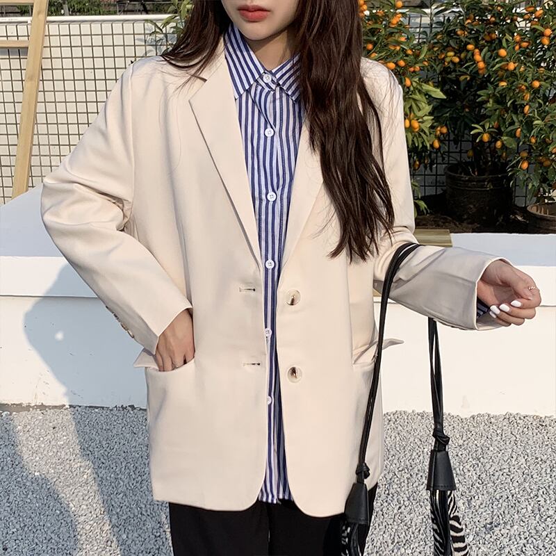 ソリッド カラージャケット スプリングルーズカジュアル ロング 春物 ソリッドカラー クレセントシティ11300650956