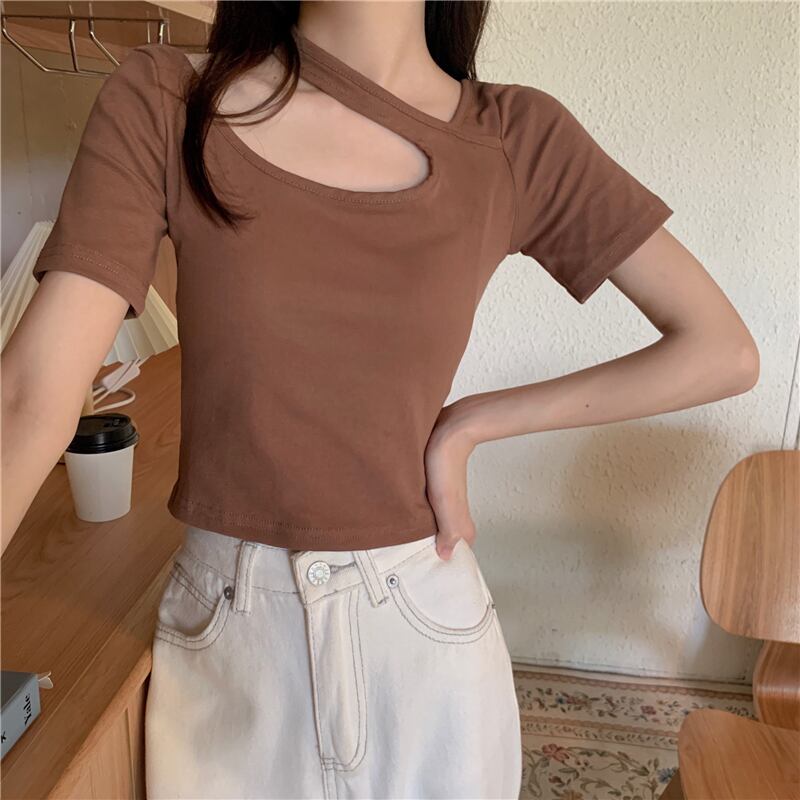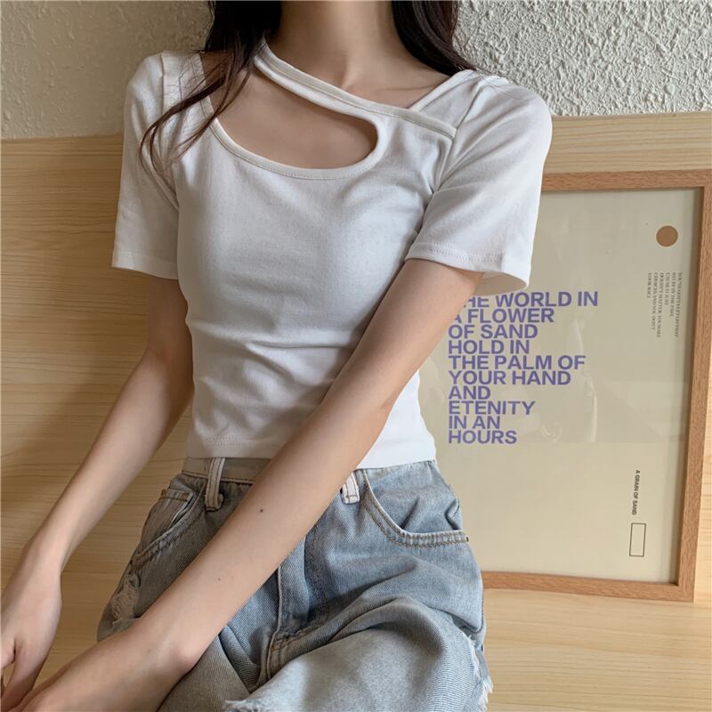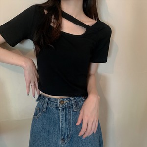 ショートTシャツ サマースリムハイウェストウェストトップス 夏物 クレセントシティ11250175790