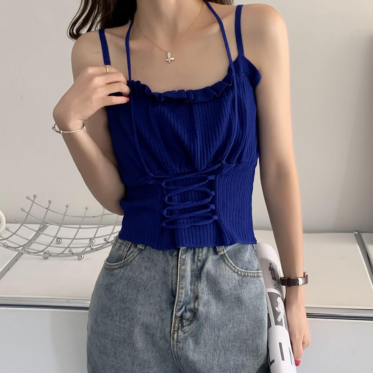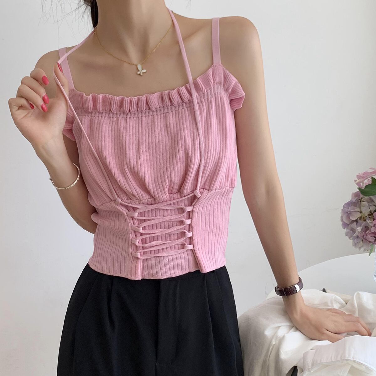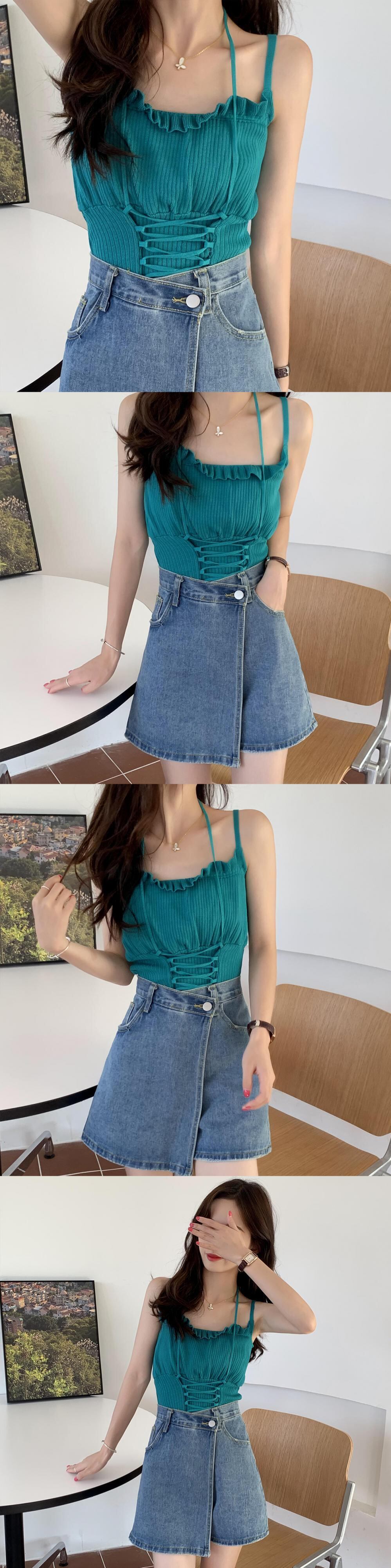 サマースリムショートトップス レース 夏物 レースアップ クレセントシティ56213438882