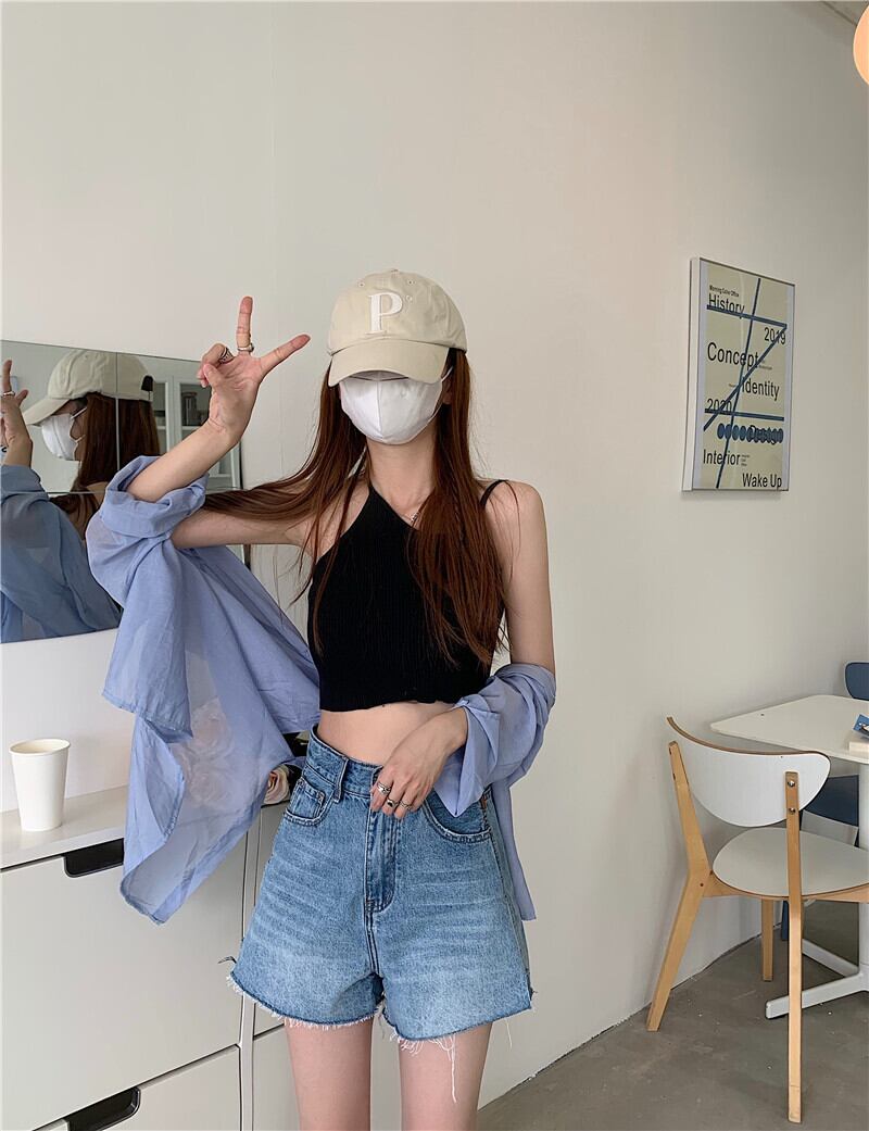 サイドジーンズ レディースサマーハイウェストルーズ薄手Aラインショーツ レッド 夏物 ブルマー クレセントシティ22154356949