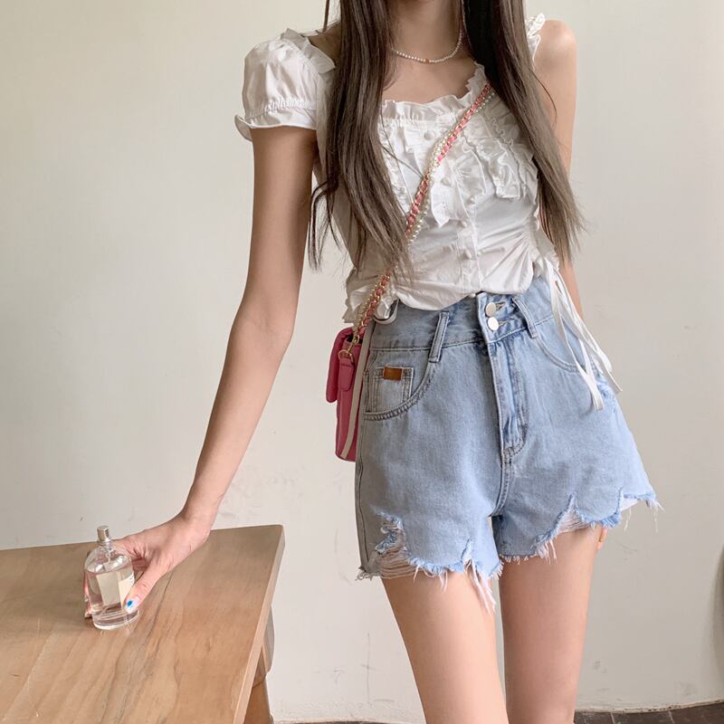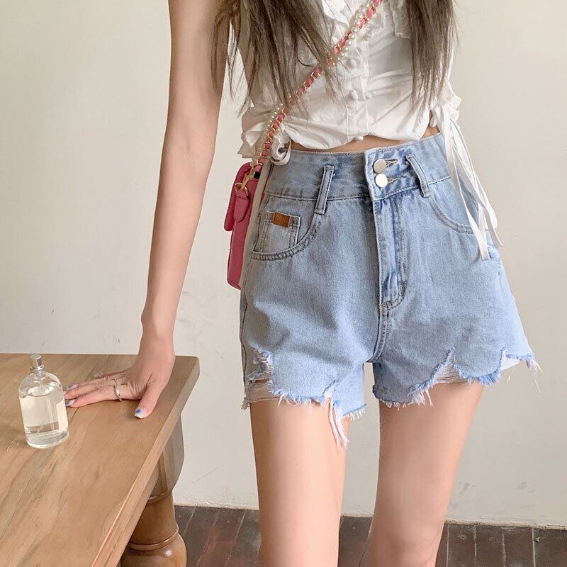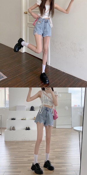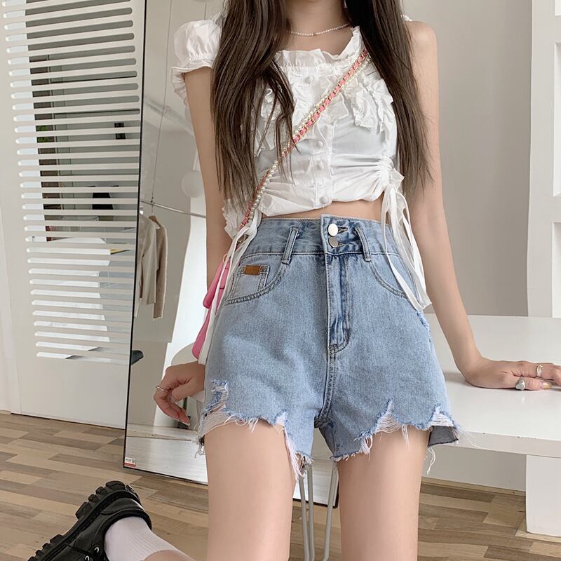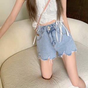 ジーンズ サマーハイウェストルーズAラインショーツ レッド 夏物 ブルマー クレセントシティ87091976726