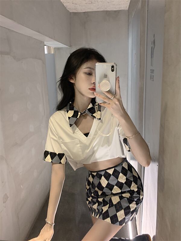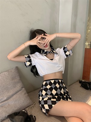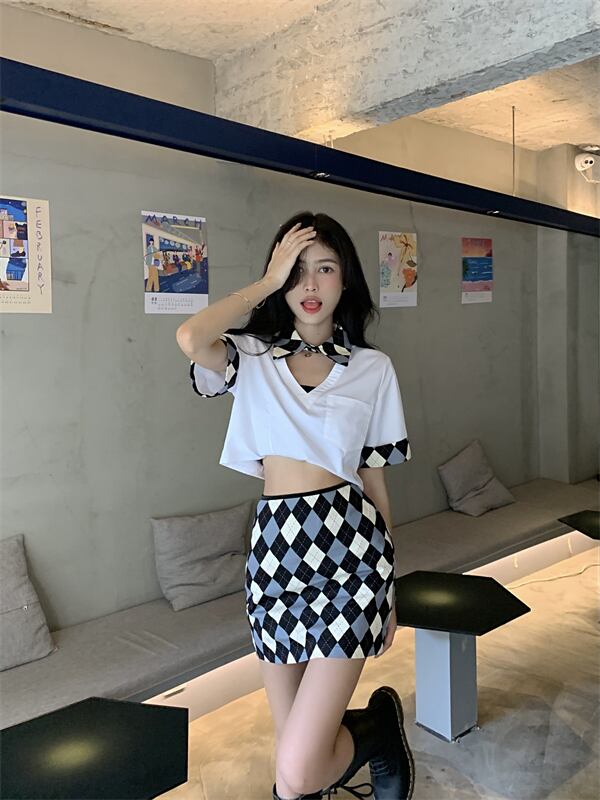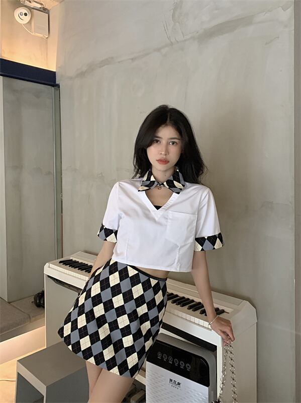 スカート サマーショートクロップトップ トップス ハイウェストウェストAライン 夏物 クレセントシティ59449896570