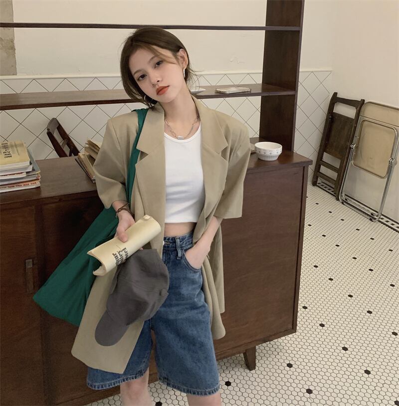 薄手ジャケット サマーカジュアルルーズソリッド カラー 夏物 ソリッドカラー クレセントシティ65350452073