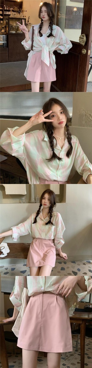 色:ピンクのスカート,白いスカート,マーメイドパウダーシャツ,ライムグリーンシャツ