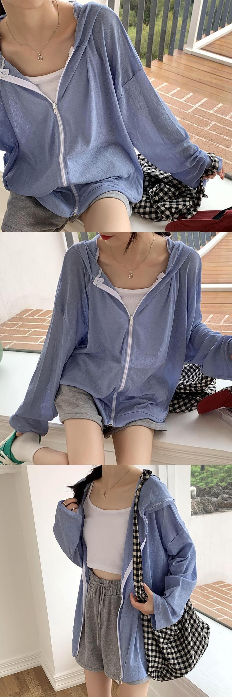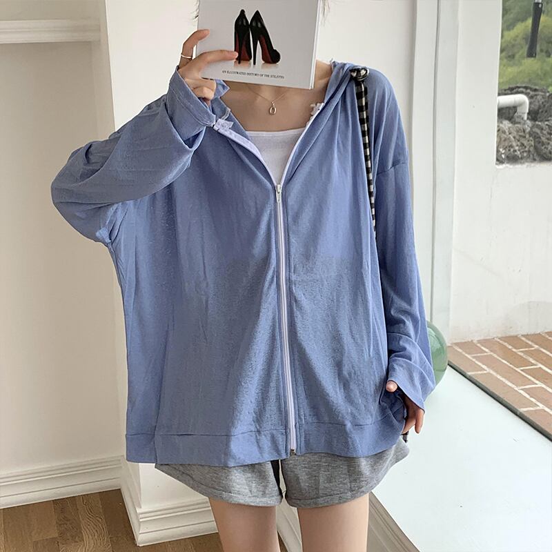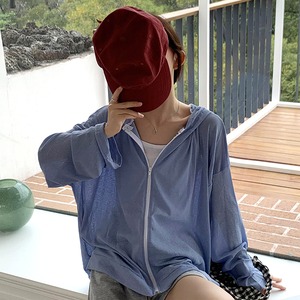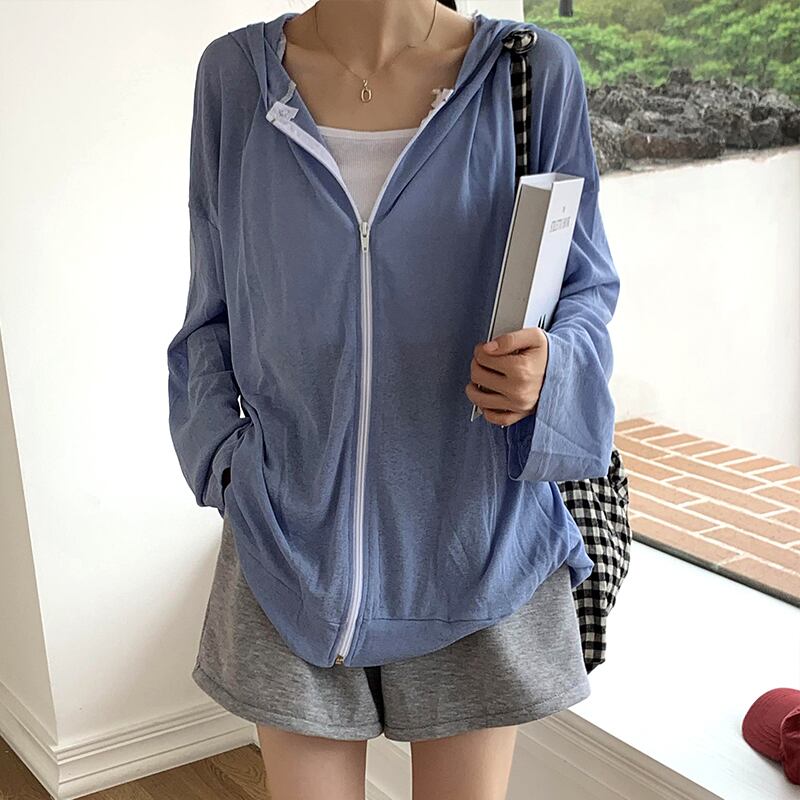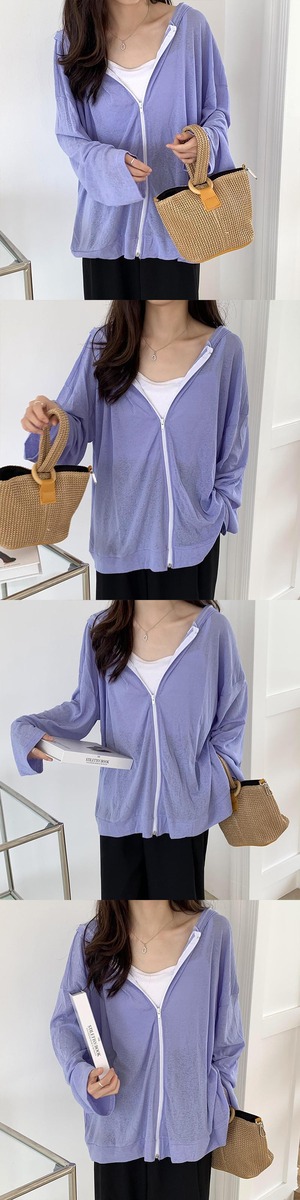 フードジャケット サマーカラールーズ薄手カーディガン長袖スリーブトップス ロング 夏物 ピュア クレセントシティ89640936505
