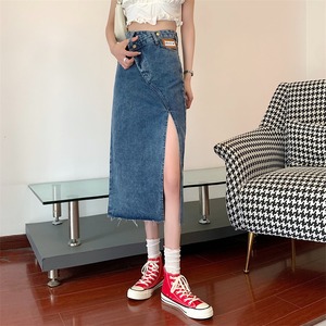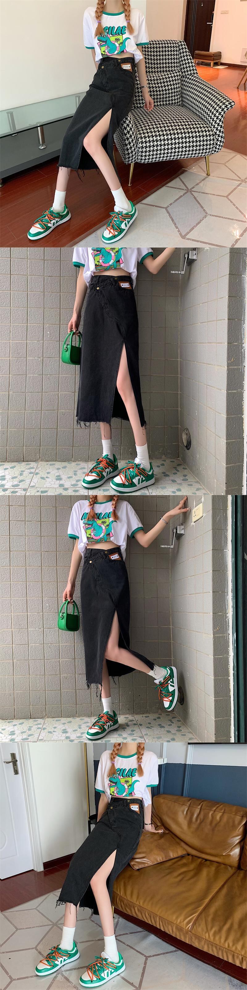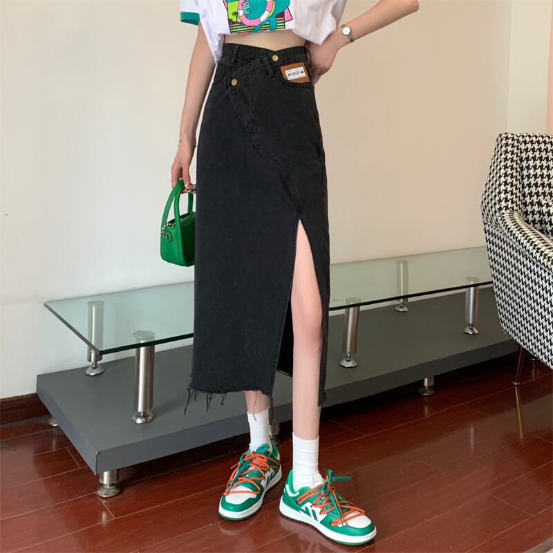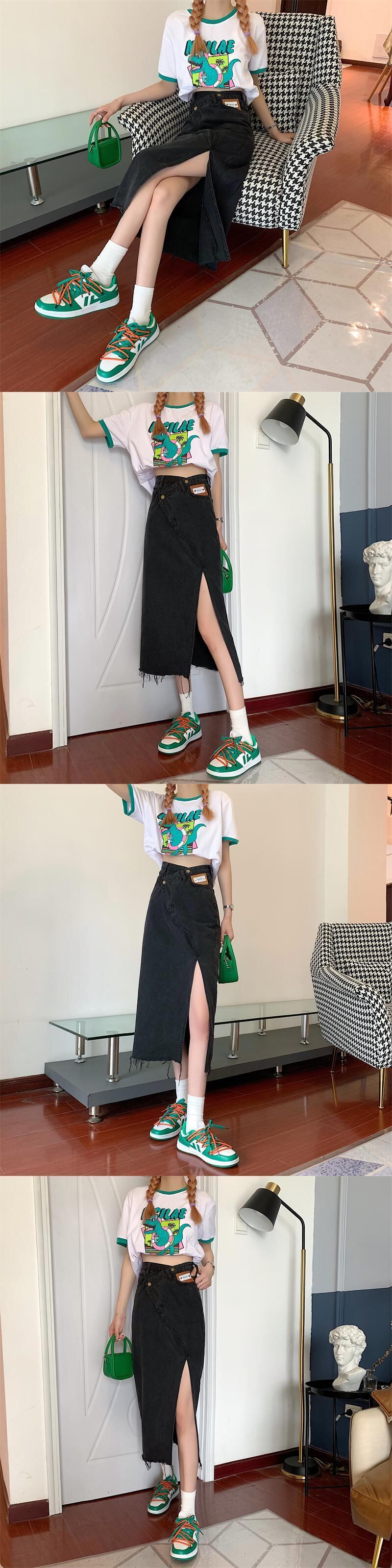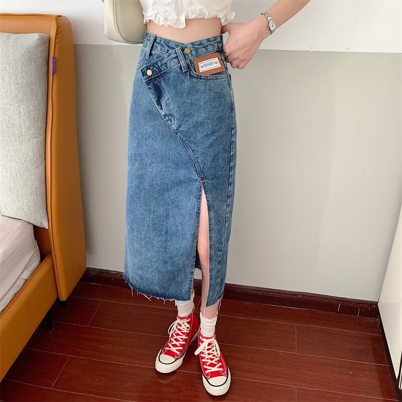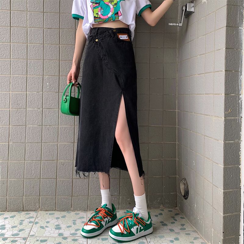 スリットスカート サマースタンダードバックルハイウェストウェストAライン レトロ 夏物 クレセントシティ54943156781