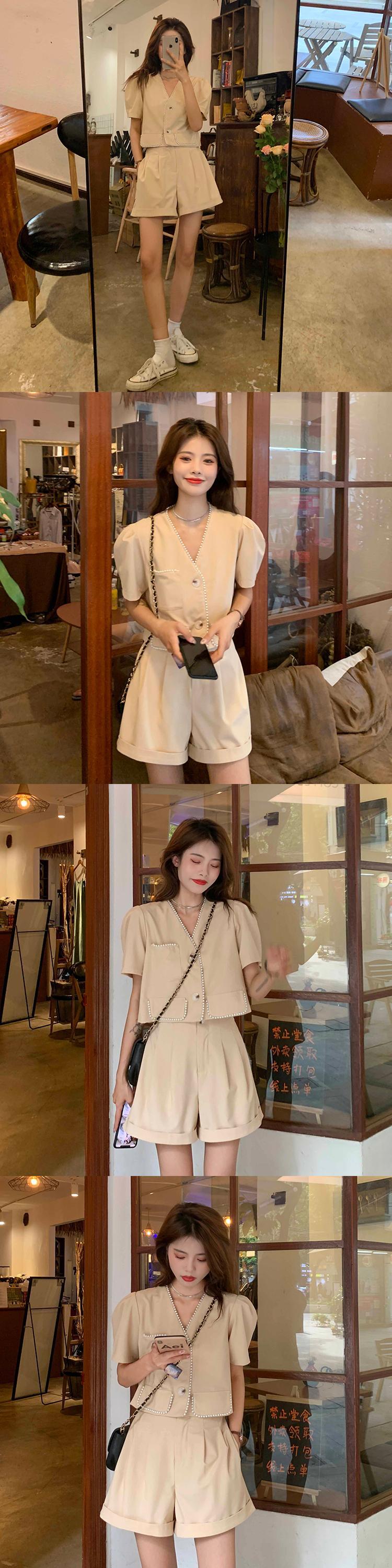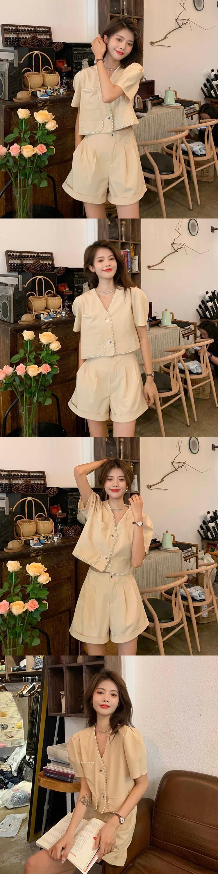 色:ブラックトップ,アプリコットトップ,黒のショートパンツ,アプリコットショーツ