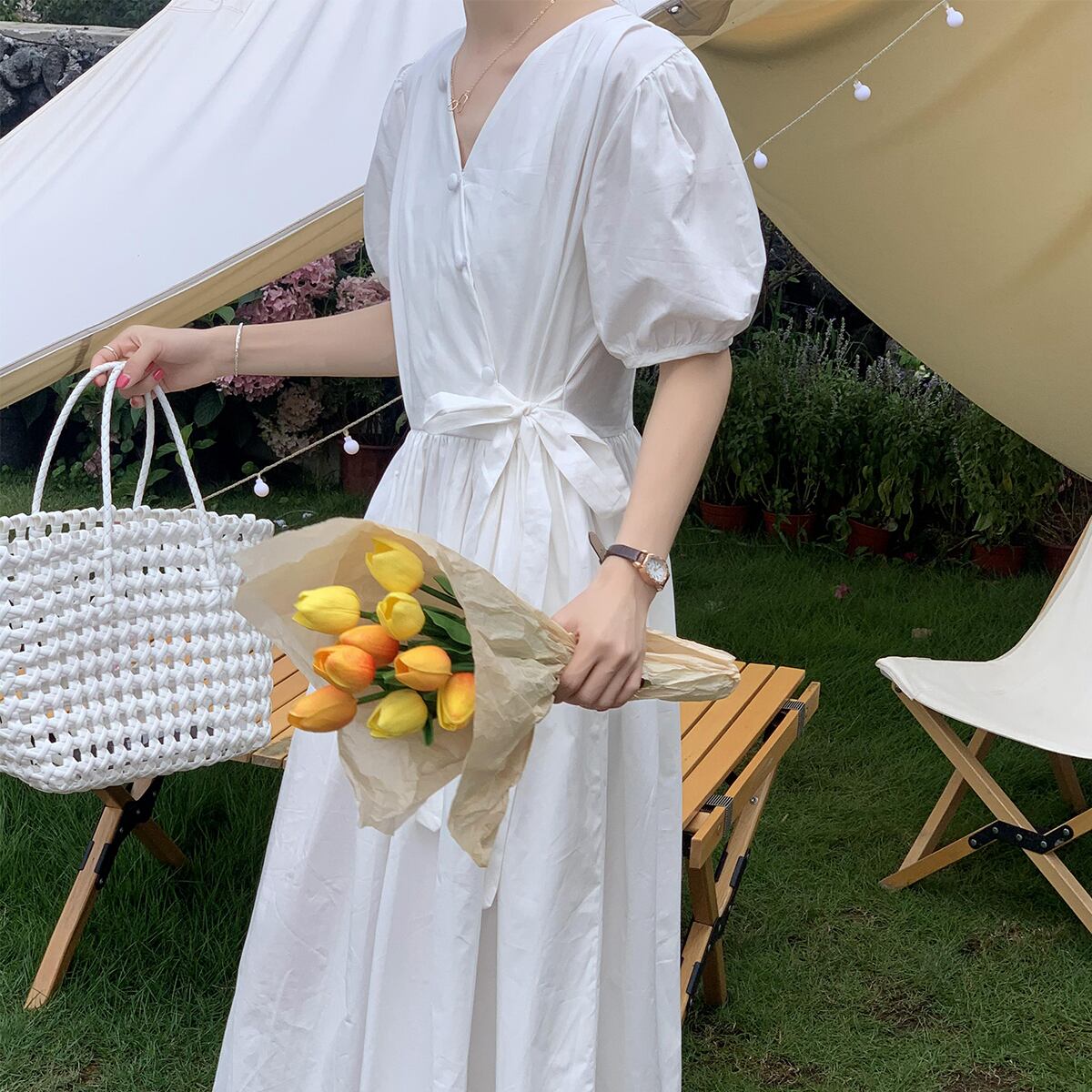ドレス サマーバンドウェストスリーブロングAライン 夏物 クレセントシティ89931032733
