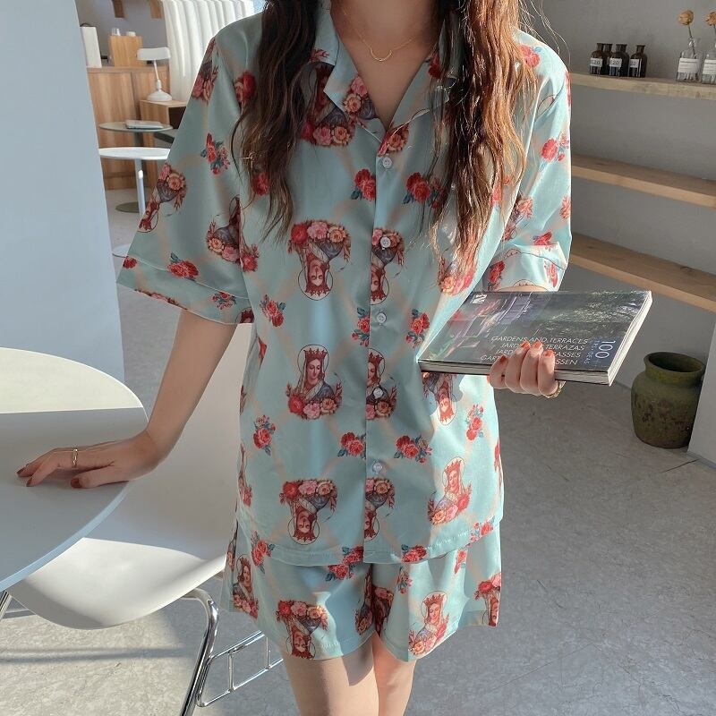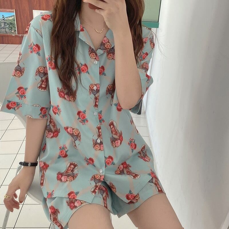 Flowerデザイン サマーカジュアルルーズ薄手ショーツ 大人ガーリー スウィート キュート 夏物 ブルマー フラワーデザイン クレセントシティ92415928921