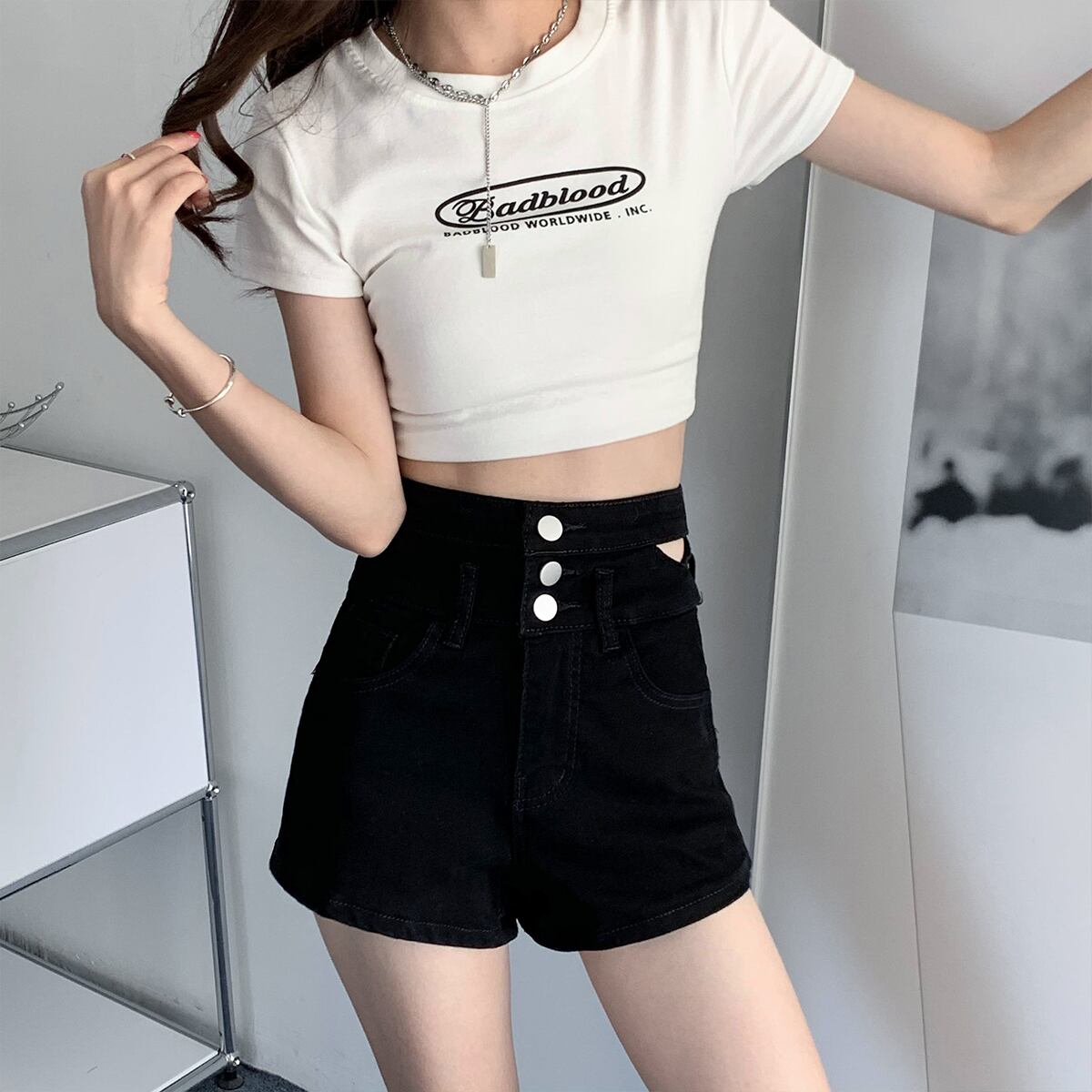 ブラックジーンズ サマーハイウェストウェストAラインパンツ ショーツ 夏物 ブルマー クレセントシティ2728288408