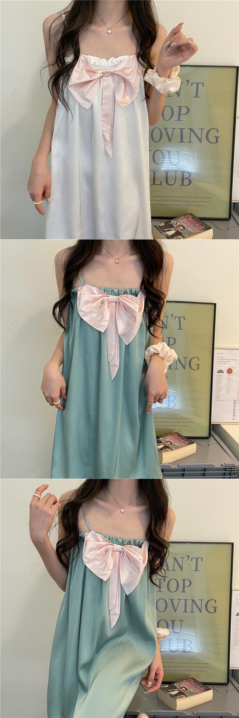 ドレス サマーリボンルーズ 大人ガーリー スウィート キュート カジュアル 夏物 シルク クレセントシティ66937856602