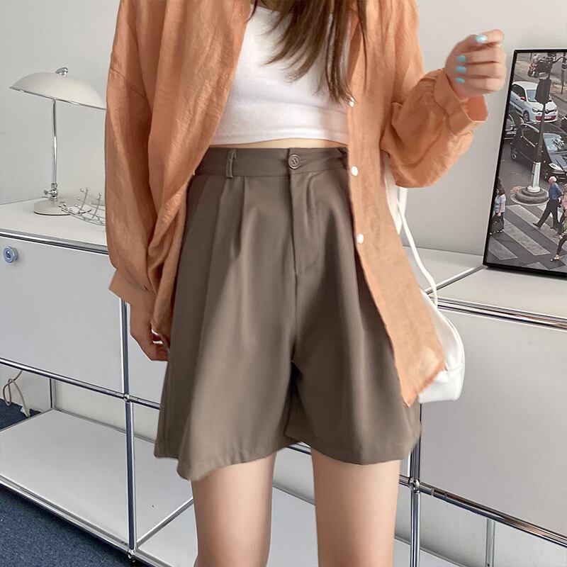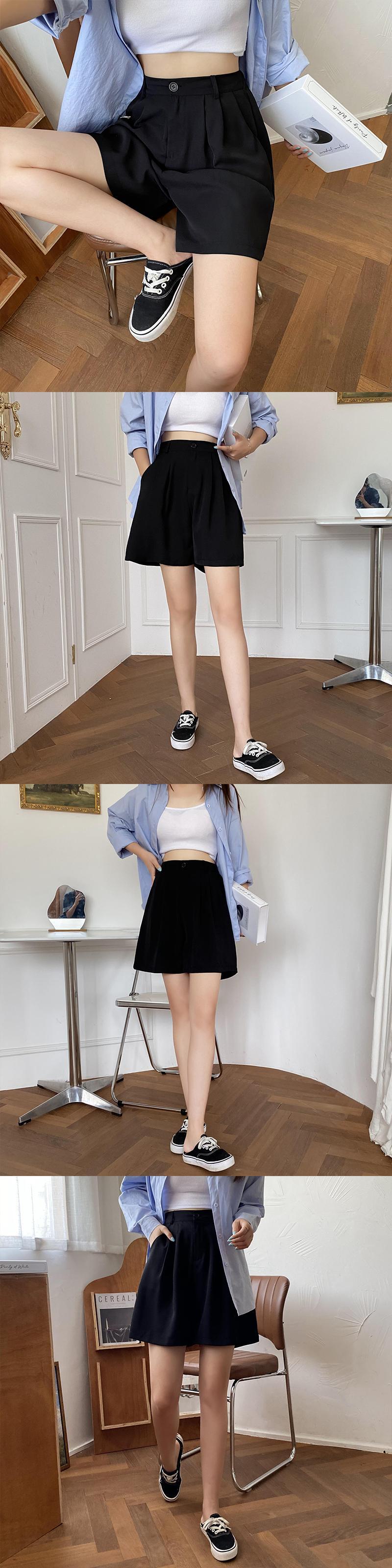 ショーツ サマー薄手ルーズハイウェストウェストワイドレッグパンツ カジュアル 夏物 ブルマー ワイドパンツ クレセントシティ79457750562