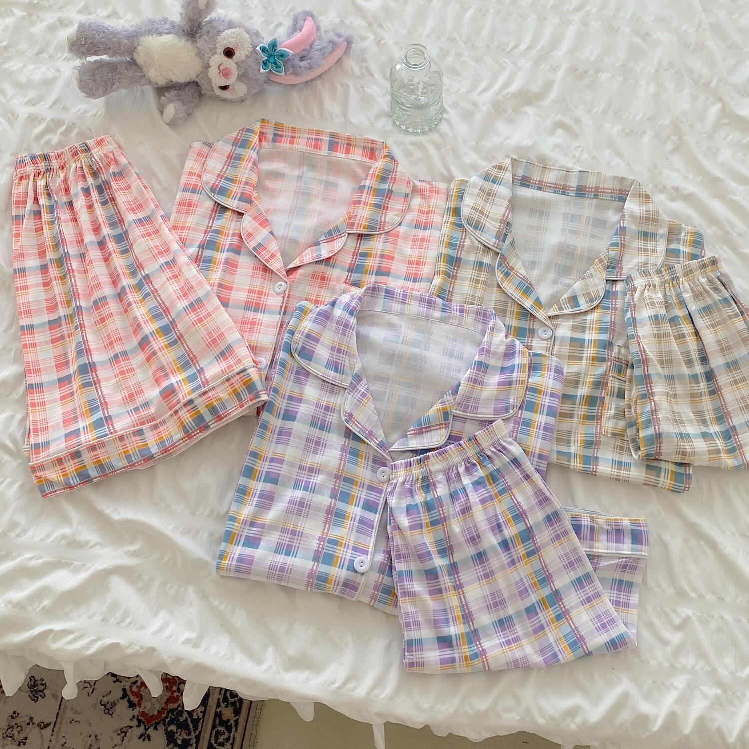 色:ピンクの格子縞セット,紫のチェック柄スーツ,カードグリッドセット