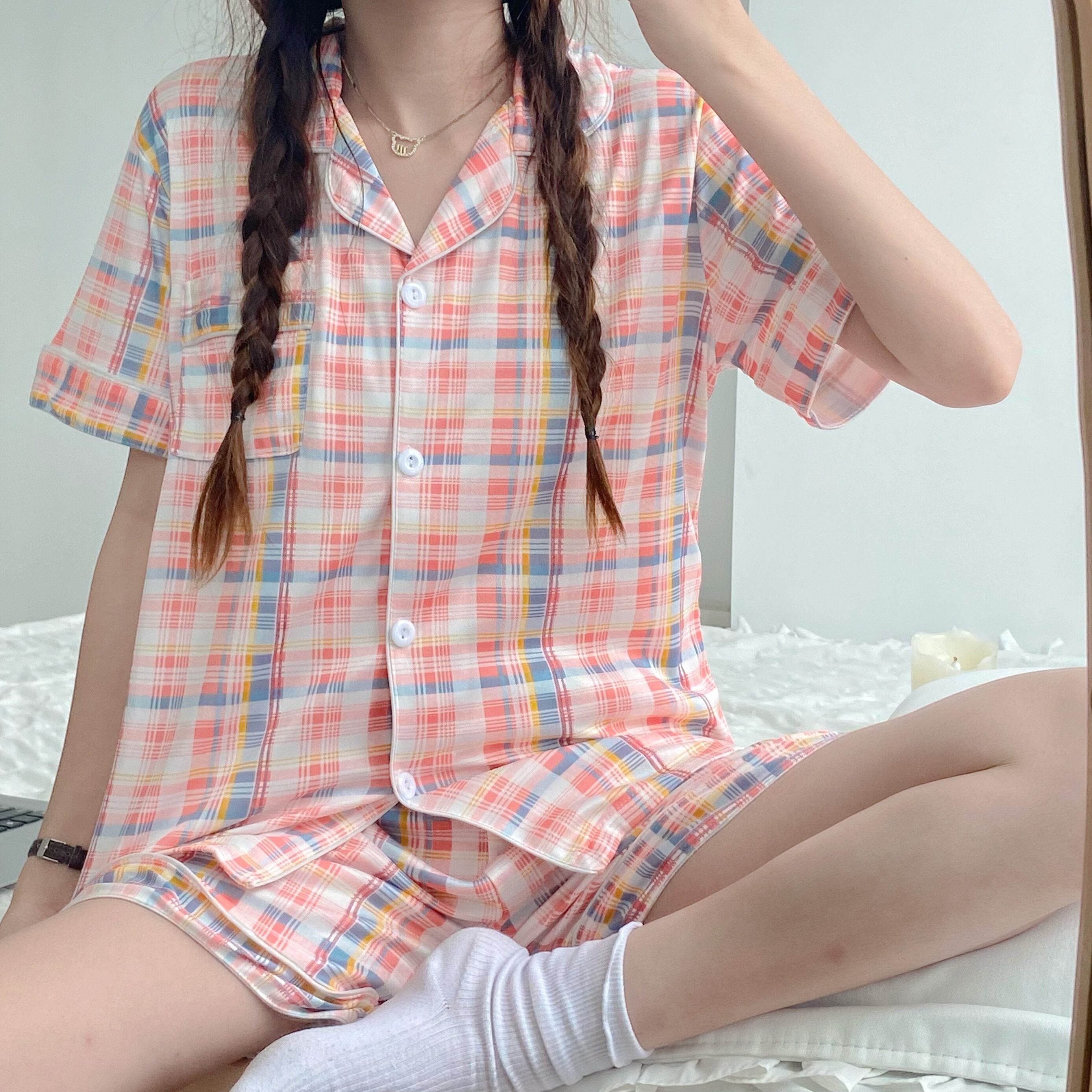 格子柄レディースサマーカジュアルルーズ薄手 大人ガーリー スウィート キュート 夏物 クレセントシティ57313524640
