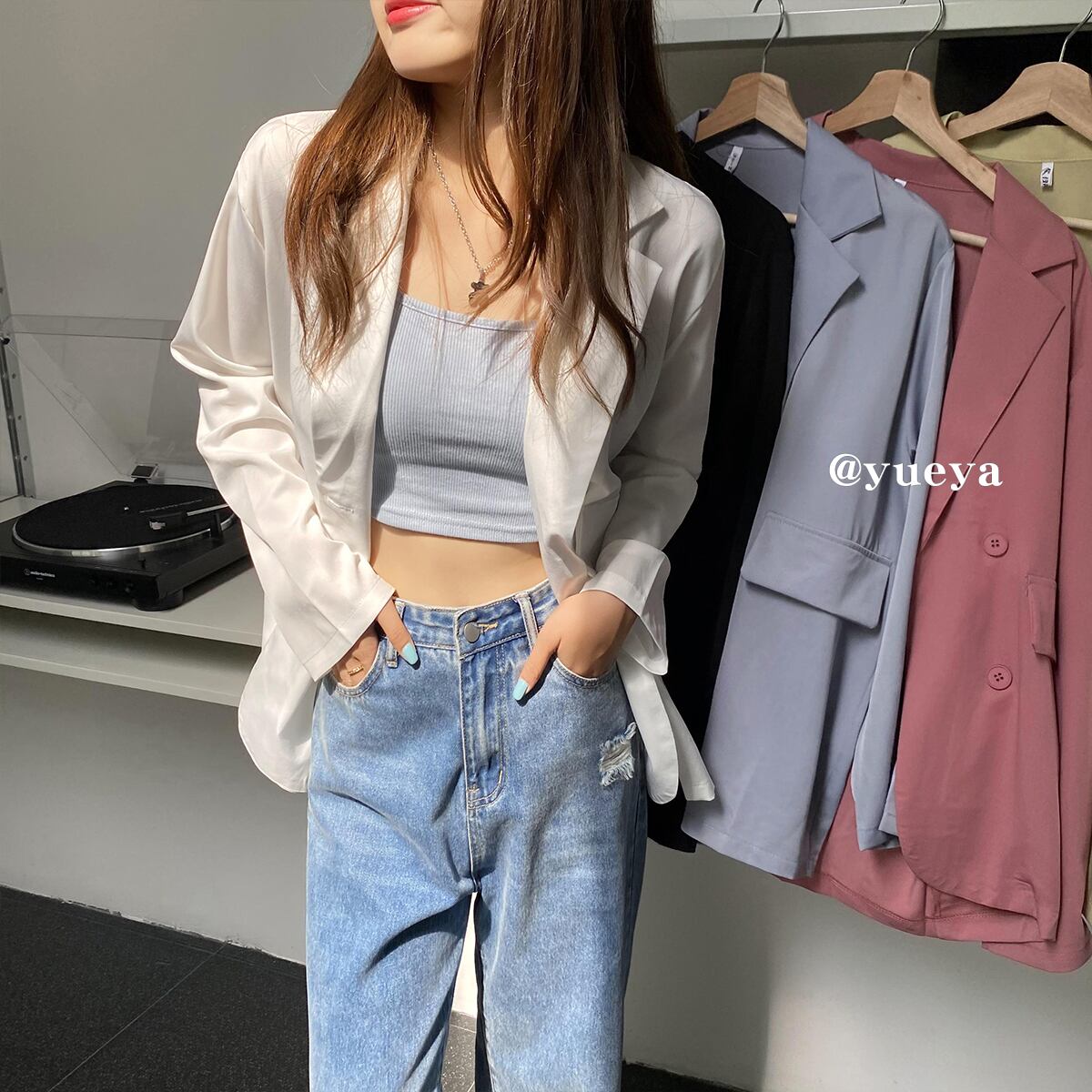 ジャケット サマー薄手カジュアルルーズソリッド カラー ロング 夏物 ソリッドカラー クレセントシティ6066684640