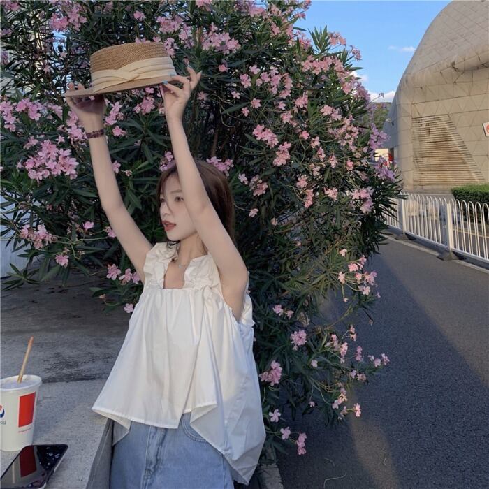 サマールーズシャツ ノースリーブトップス 大人ガーリー スウィート キュート カジュアル 夏物 クレセントシティ16142236637