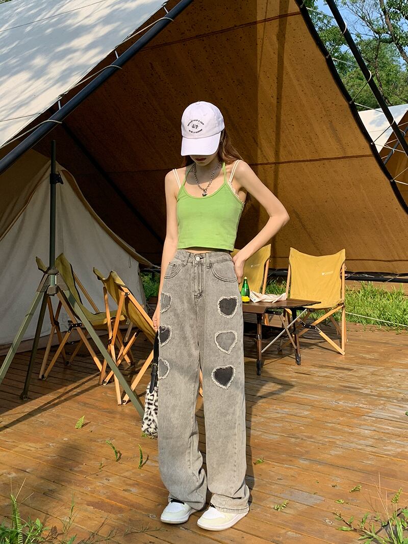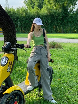 スタンダードジーンズ サマーハイウェストウェストルーズ薄手パンツ レトロ 夏物 クレセントシティ20916532521