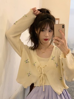 薄手ニットカーディガンサマー レッド 刺繍 大人ガーリー スウィート キュート カジュアル 夏物 クレセントシティ36071873898