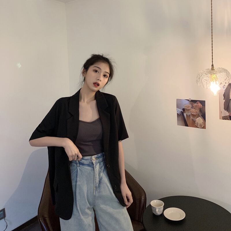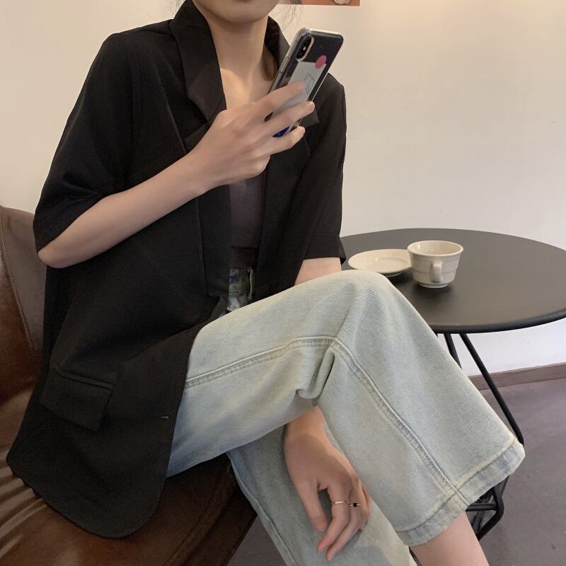 レッドカジュアルジャケット サマーブラック薄手ルーズ 夏物 クレセントシティ86370215250