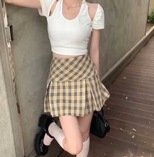 色:肩のTシャツの漏れ,チェック柄スカートS,チェック柄スカートM