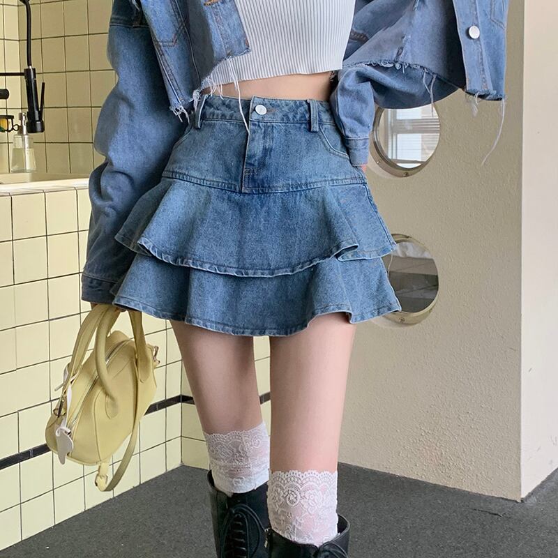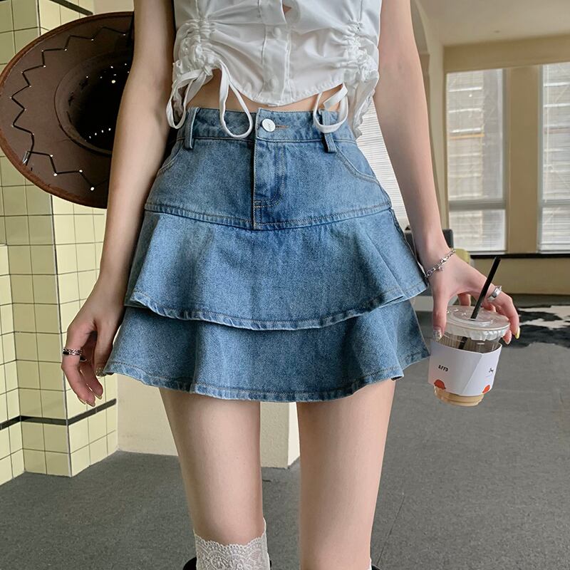 ハイウェストスカート サマースタンダード薄手Aライン レトロ 夏物 クレセントシティ9671666375