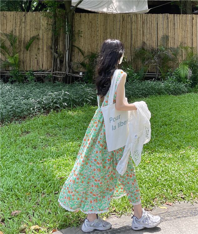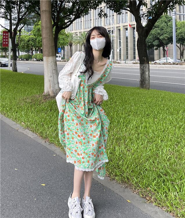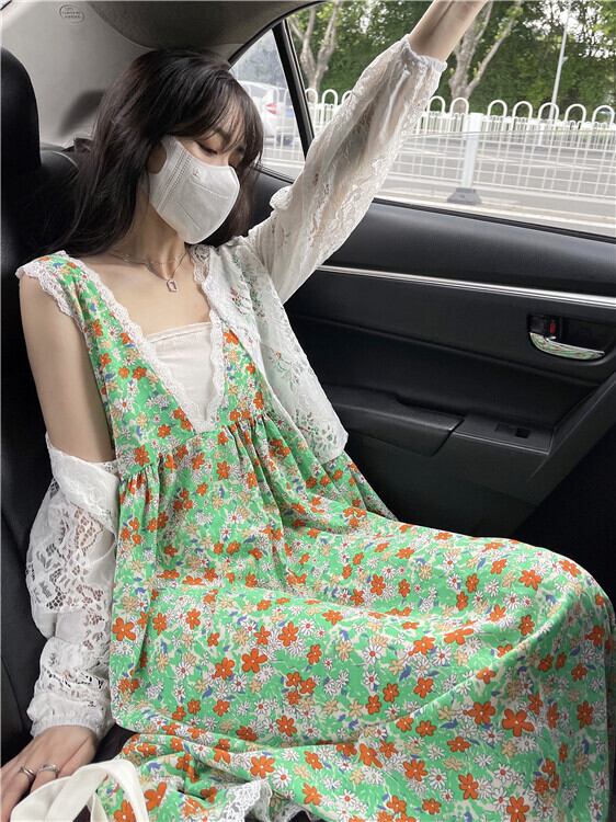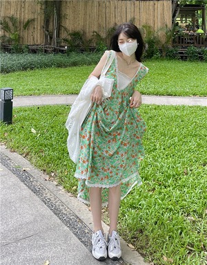 レースドレス レディースサマーVネックルーズハイウェストウェストAラインフローラルスカート 大人ガーリー スウィート キュート カジュアル 夏物 花柄 クレセントシティ10093814827