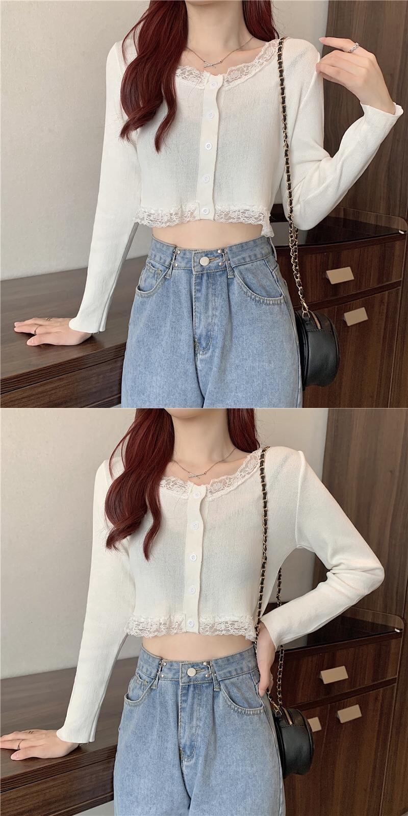 レースセーター サマースリムクロップドクロップトップ トップス ロング 夏物 クレセントシティ58539452132