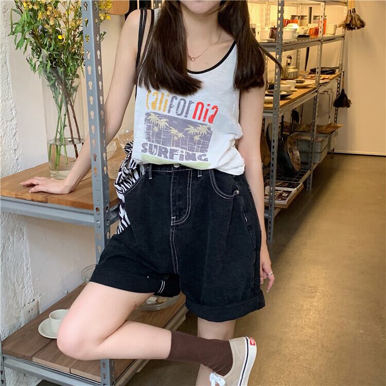 スタンダードショーツ サマーハイウェストウェストルーズ薄手パンツ レトロ 夏物 アジャスタブル ブルマー クレセントシティ91539643493