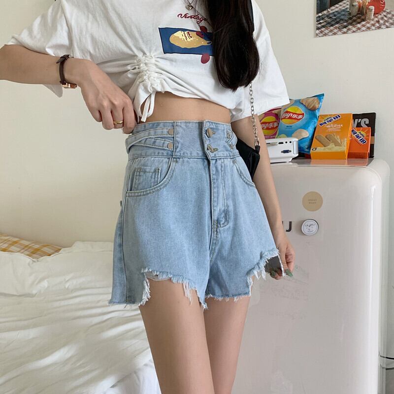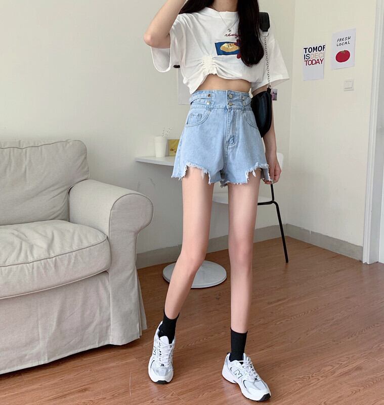 ジーンズ サマーハイウェストウェストAラインパンツ ルーズ薄手ショーツ レッド 夏物 ブルマー クレセントシティ18965657328