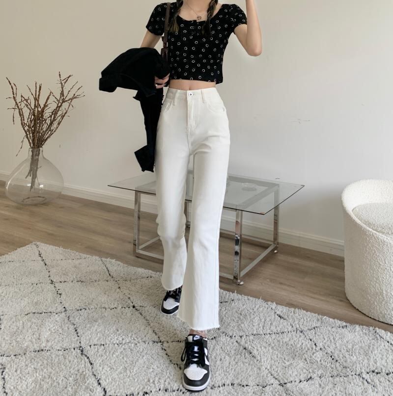 ホワイトジーンズ サマースリムハイウェストウェスト 夏物 クレセントシティ21595738749